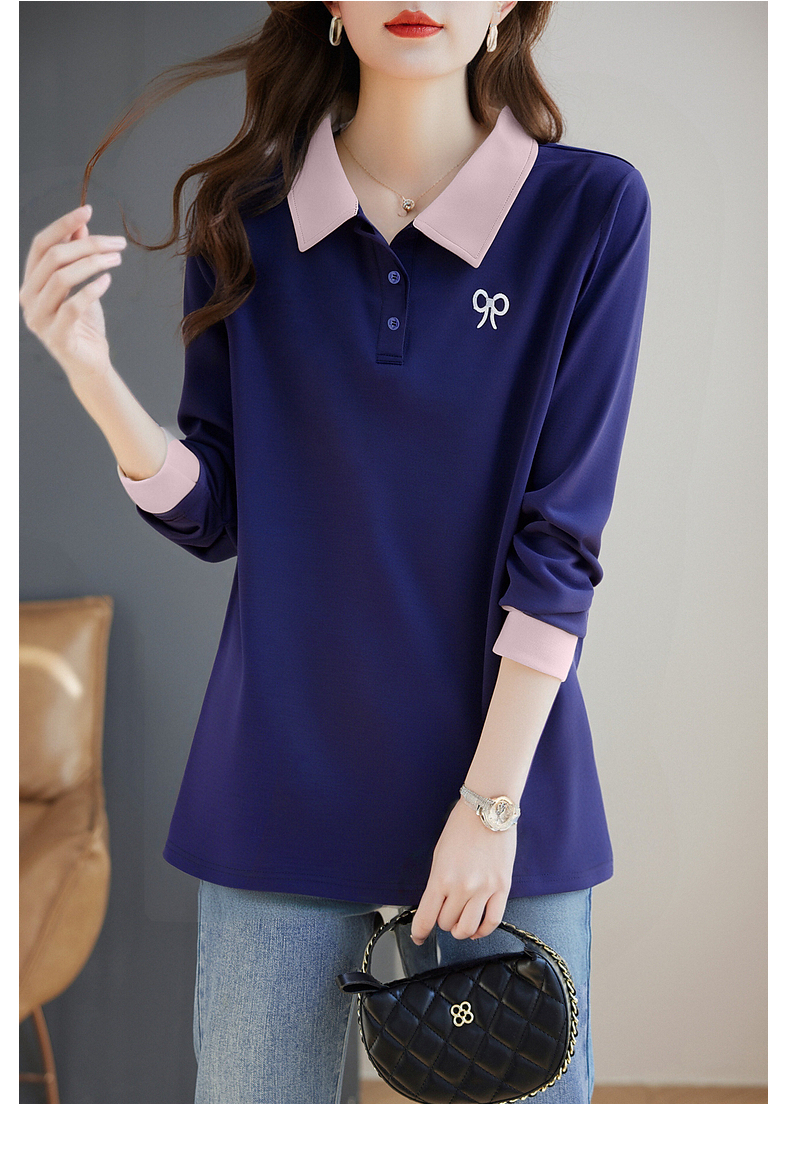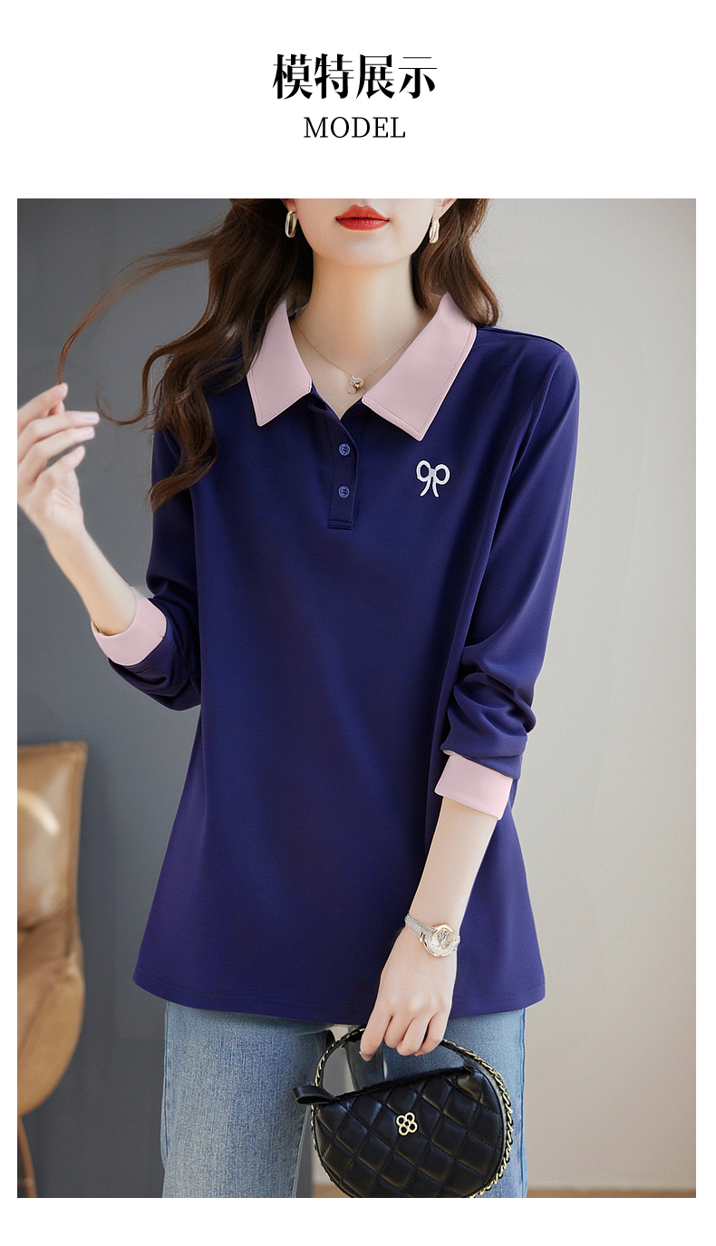 polo领长袖t恤女春秋2026新款春秋单穿翻领上衣爆款中长款打底衫
