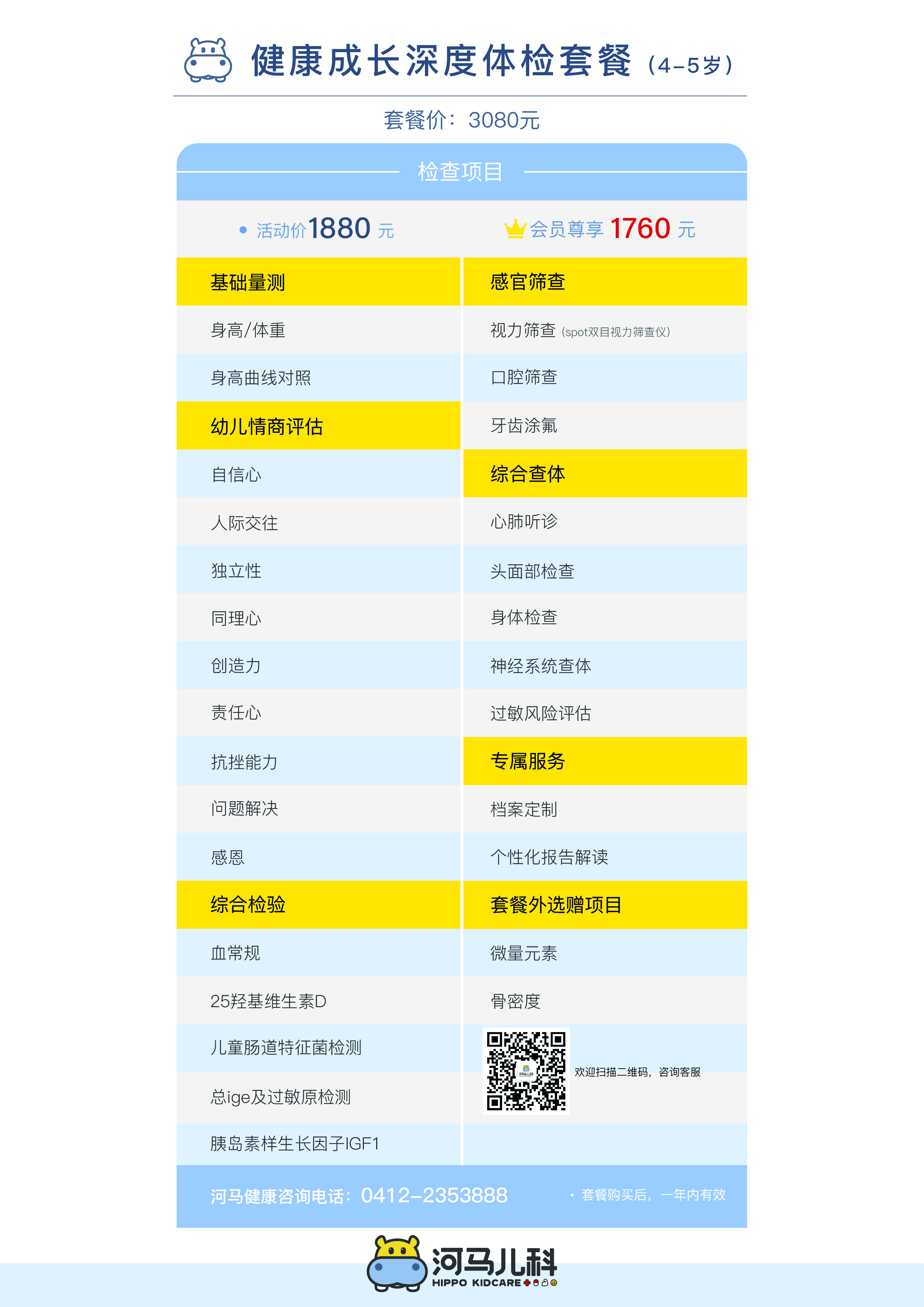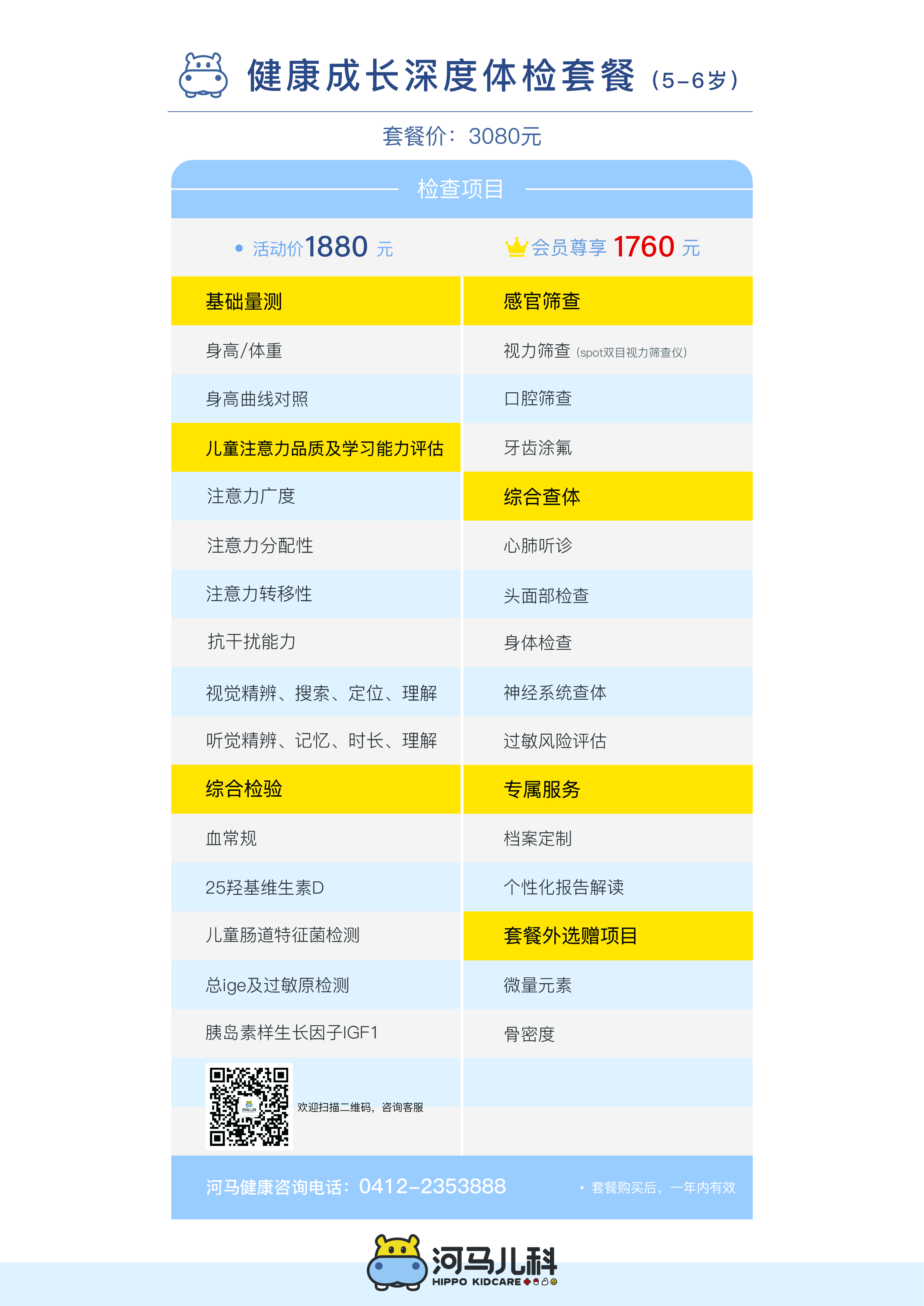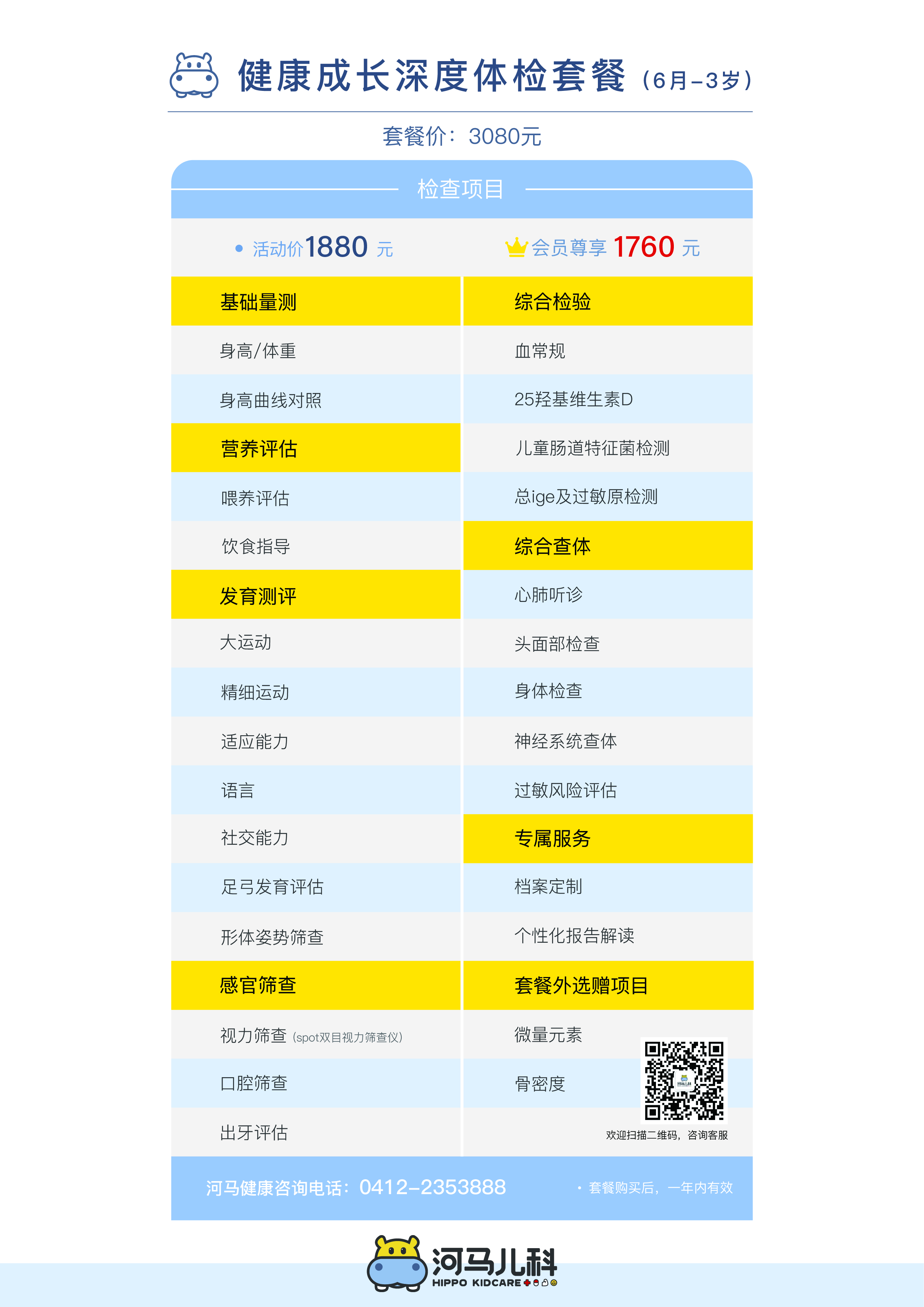 (鞍山6个月-14岁)健康成长深度体检套餐