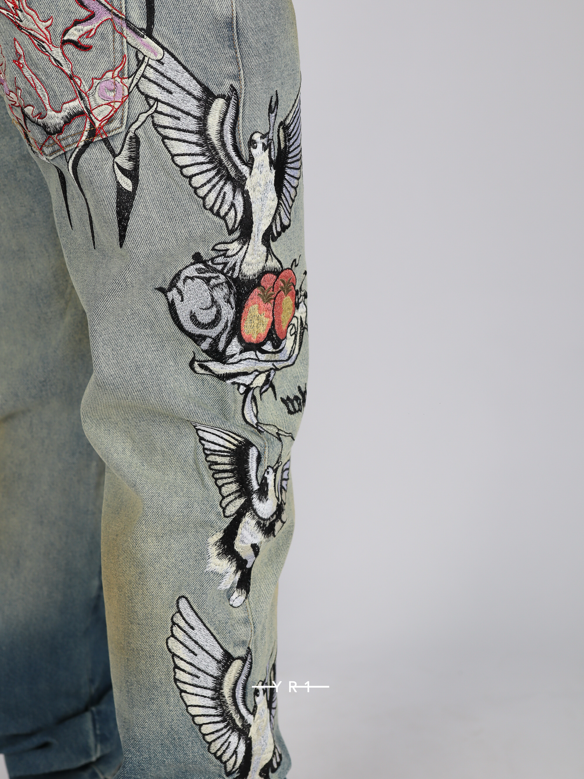 Who Decides War | 和平鸽刺绣直筒牛仔裤