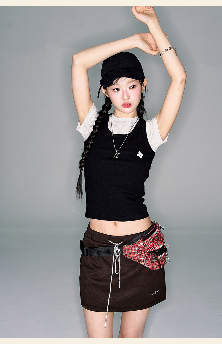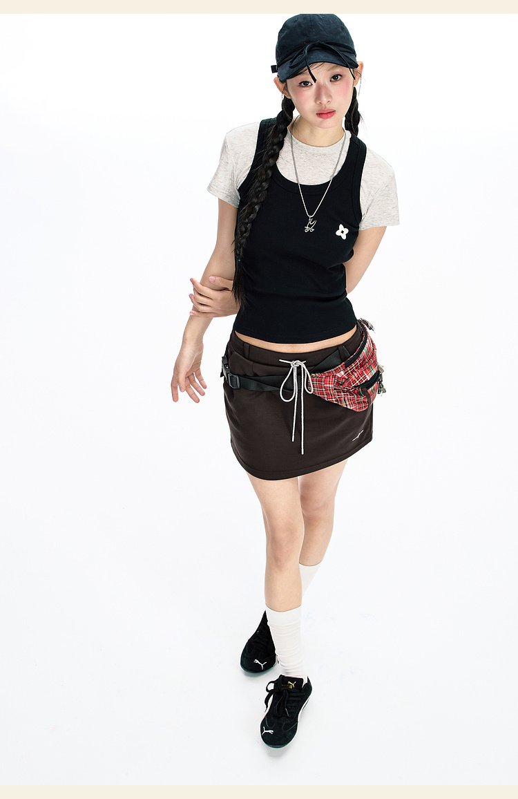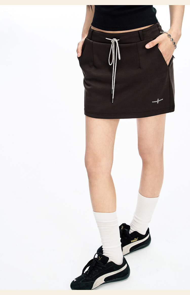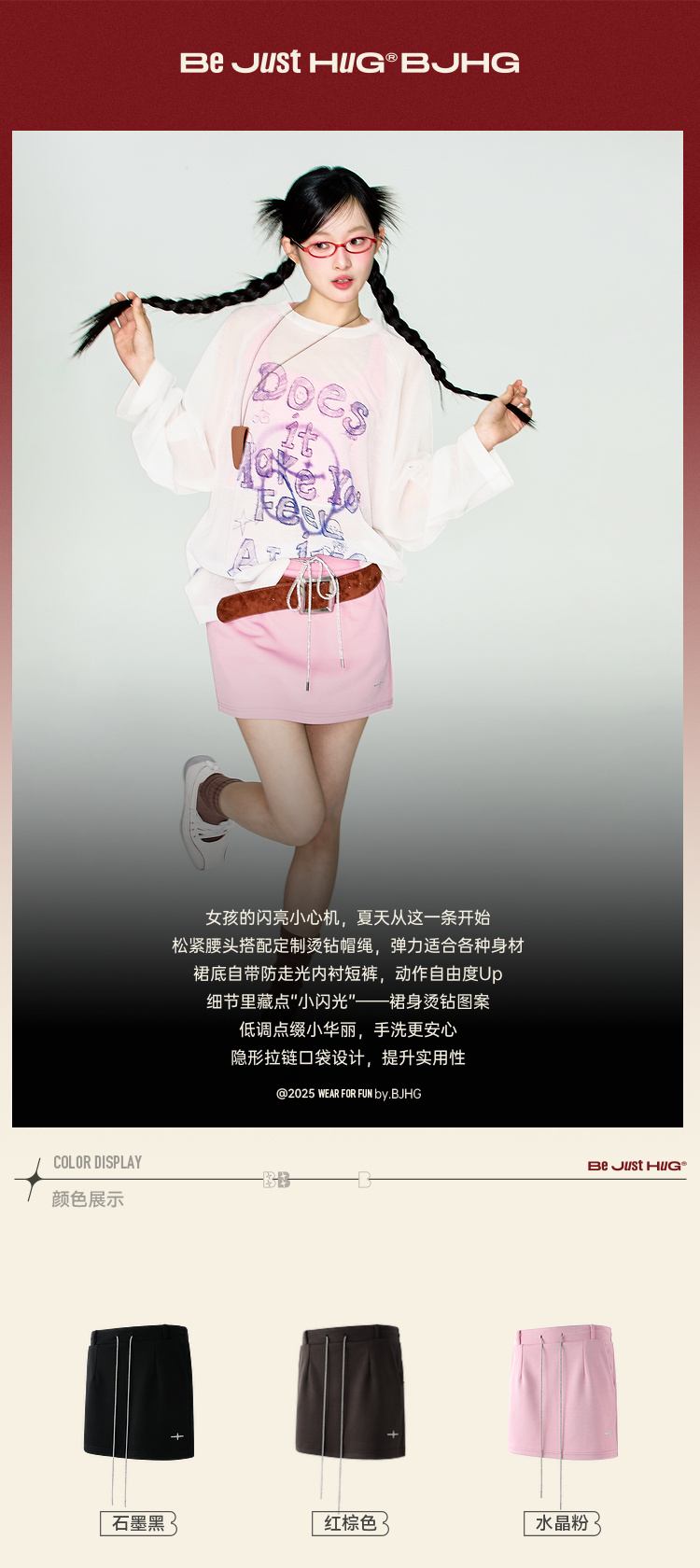 BJHG不计后果 弹力短裙女款夏季2025新款美式烫钻工艺防走光A字裙