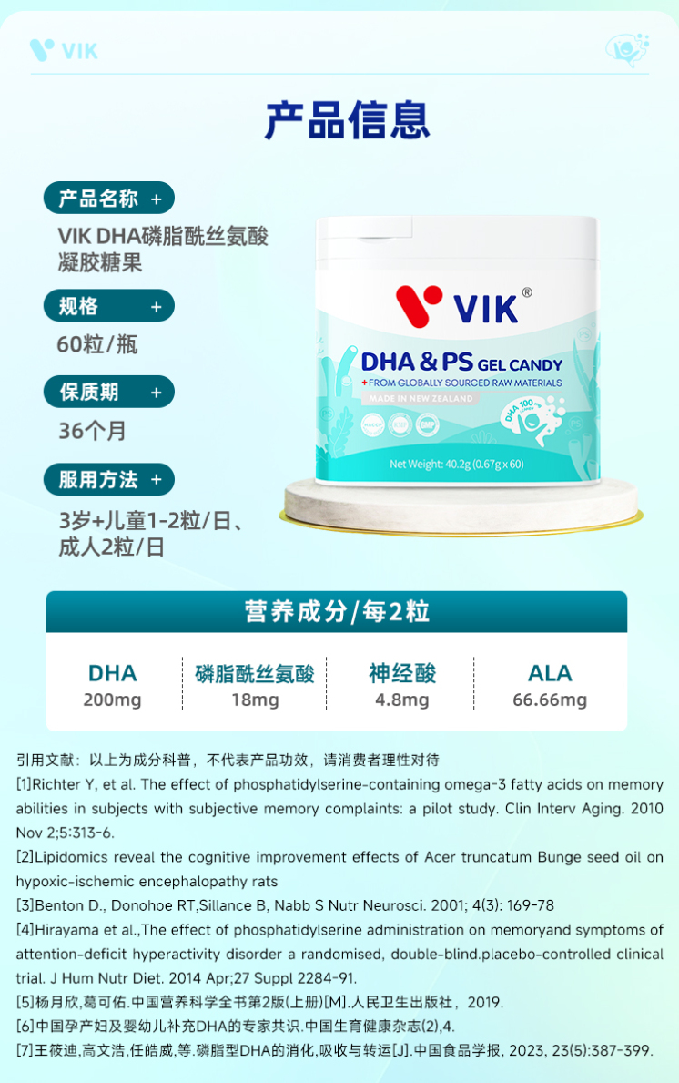 VIK逢时 DHA 磷脂酰丝氨酸凝胶糖果 0.678克/粒 60粒/瓶