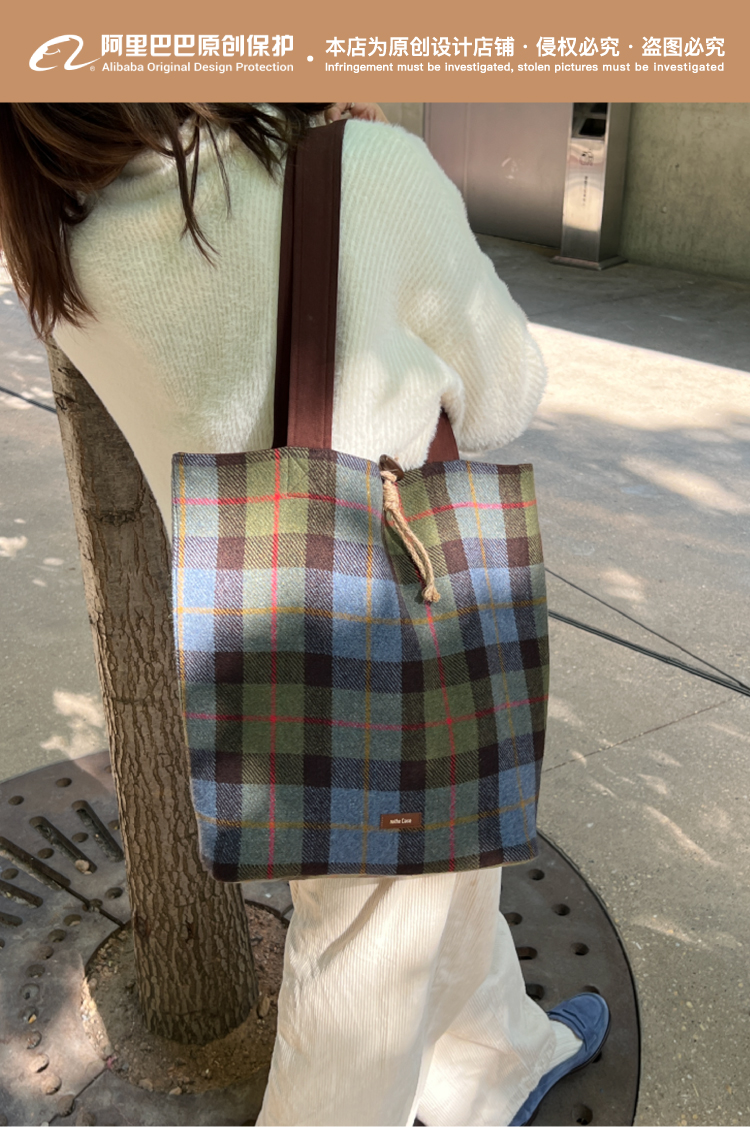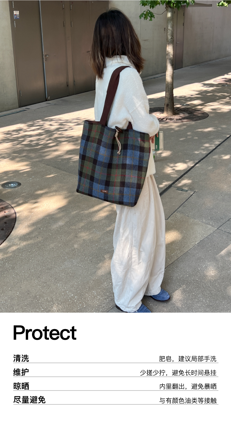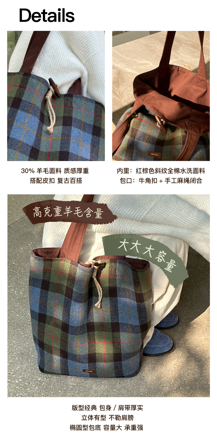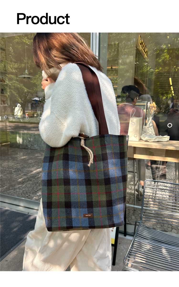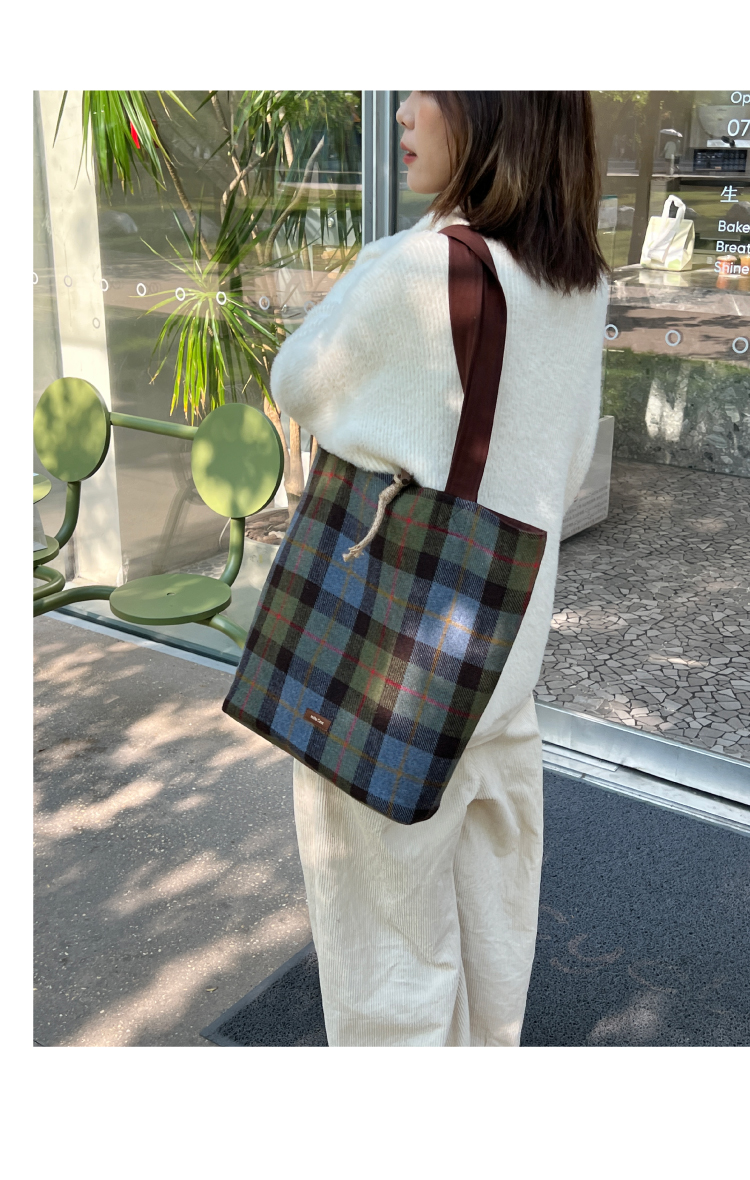 nothe Case布然/BLSW195-001/「柏林书屋」复古羊毛格纹大容量托特包