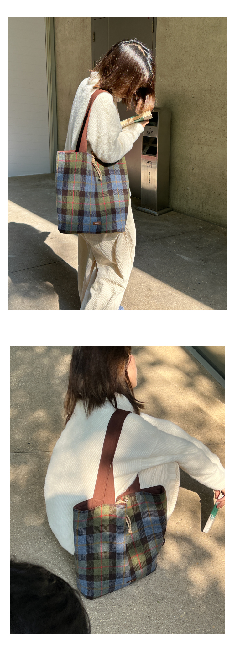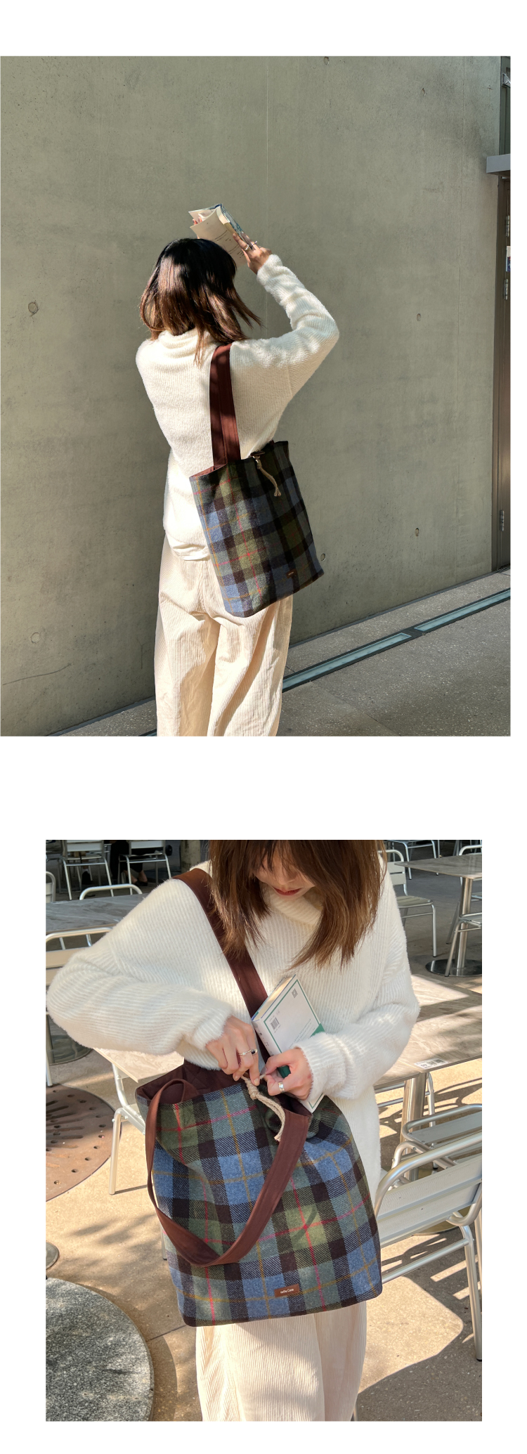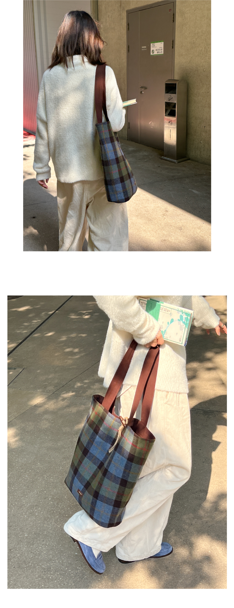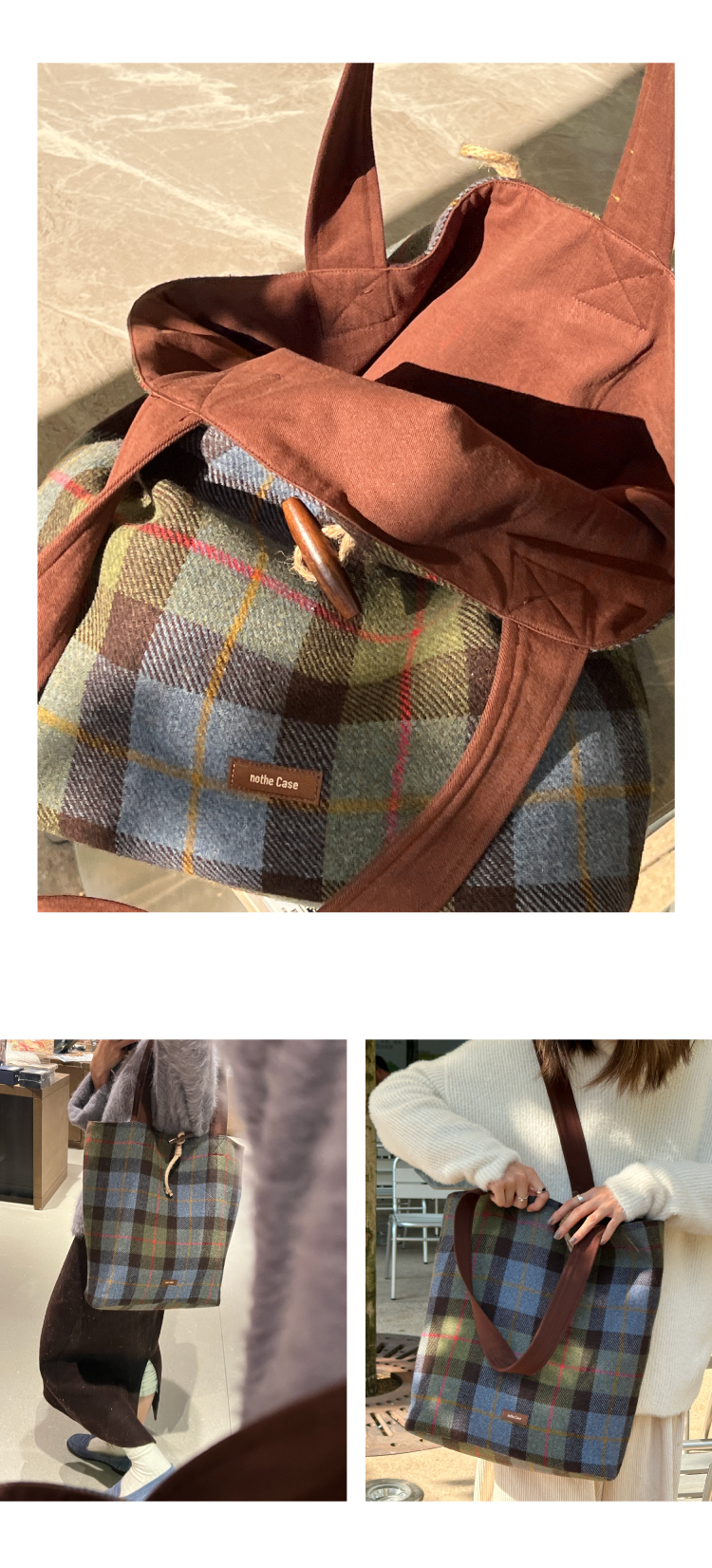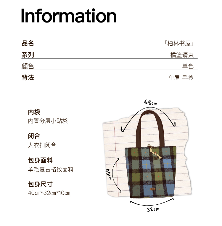 nothe Case布然/BLSW195-001/「柏林书屋」复古羊毛格纹大容量托特包
