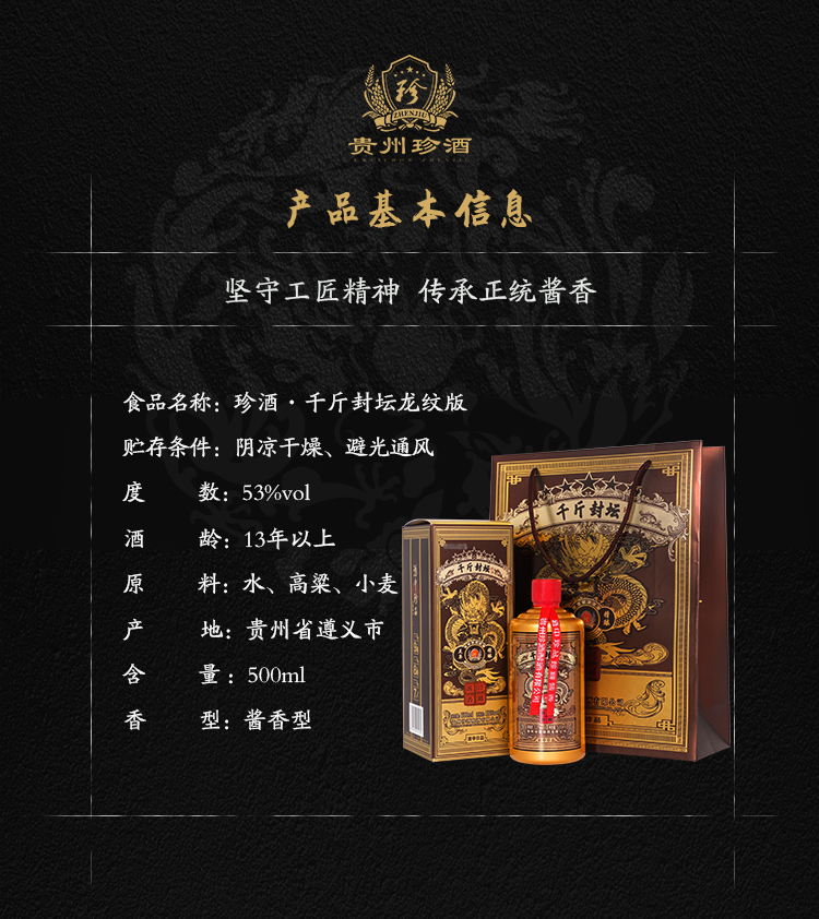 贵州珍酒 千斤封坛 500ml 53度酱香型 白酒