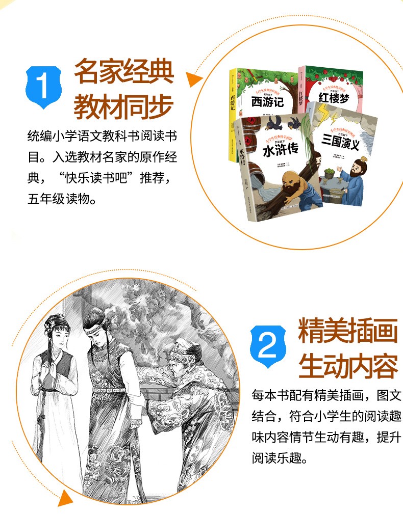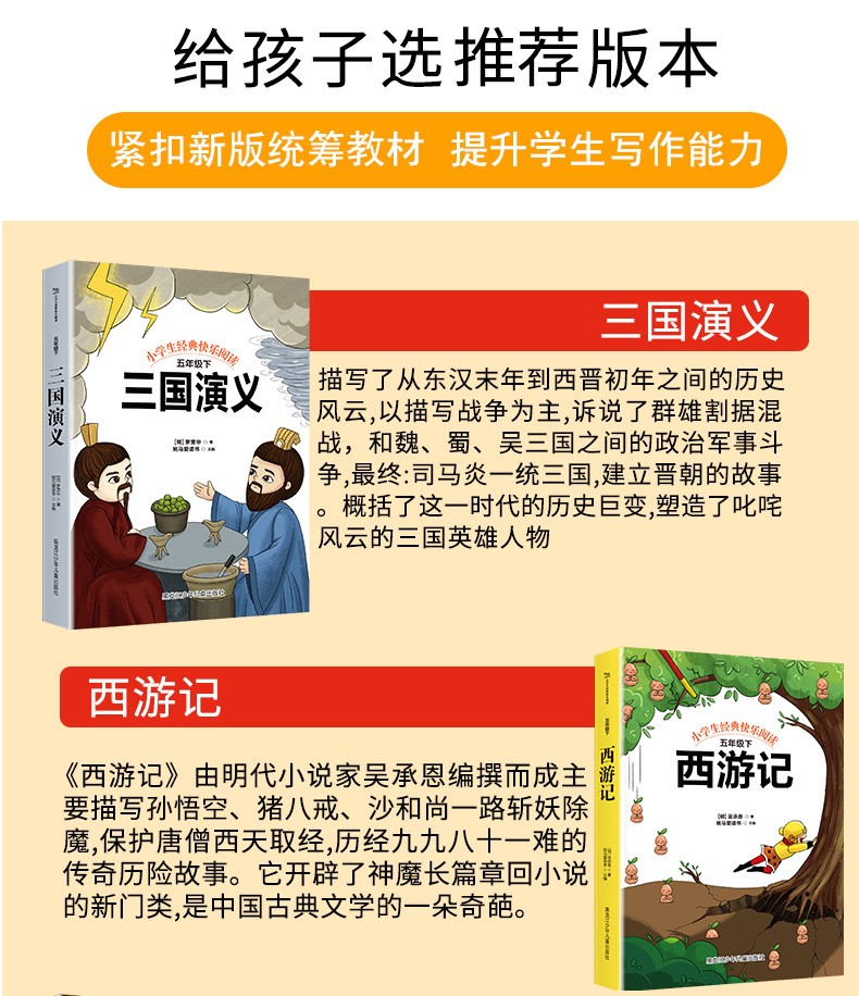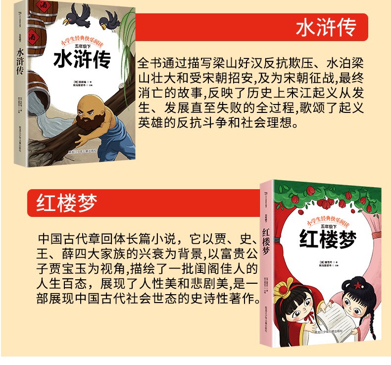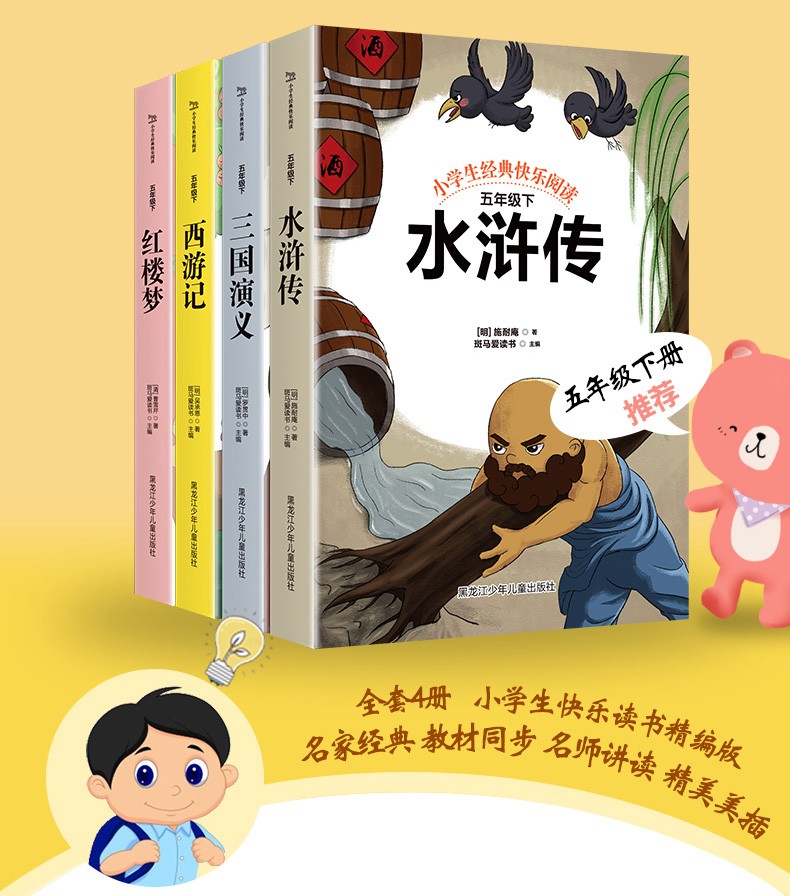 【优惠套装】五年级必读课外书 四大名著全套小学生版西游记红楼梦三国演义水浒传快乐读书吧五年级下册小学生必读课外阅读书籍