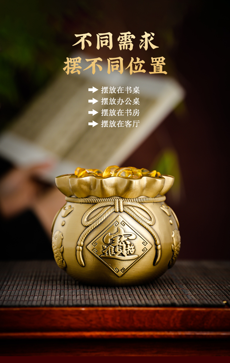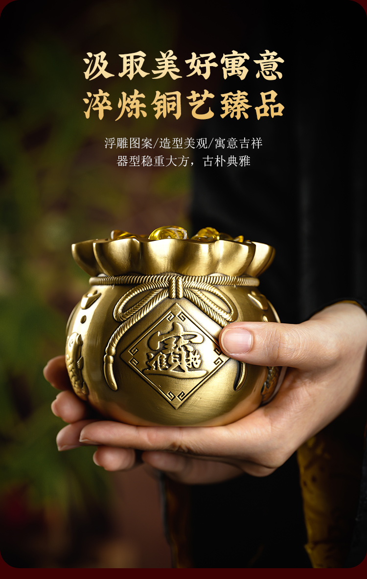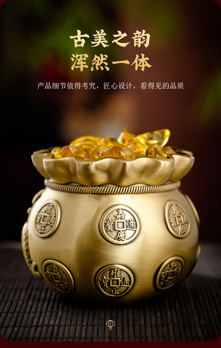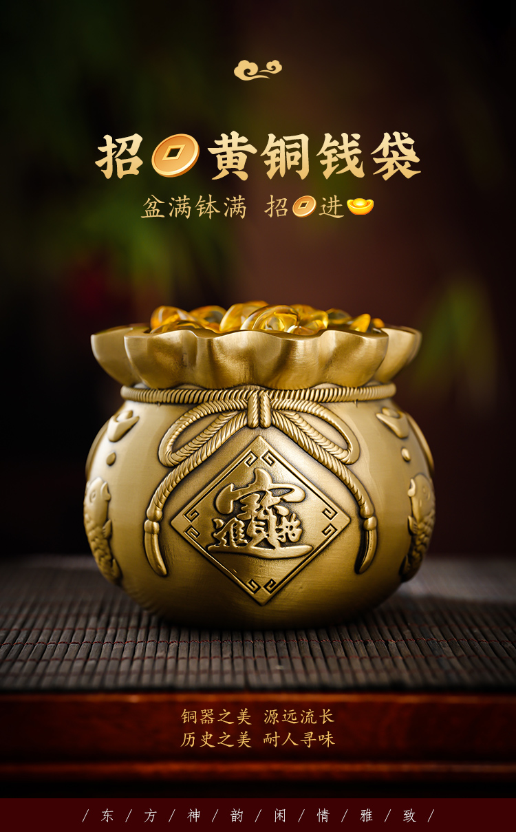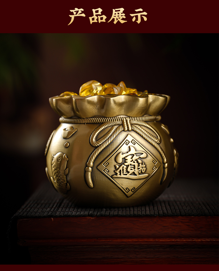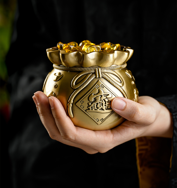 新年黄铜钱袋摆放客厅书房书桌摆放家居装饰品