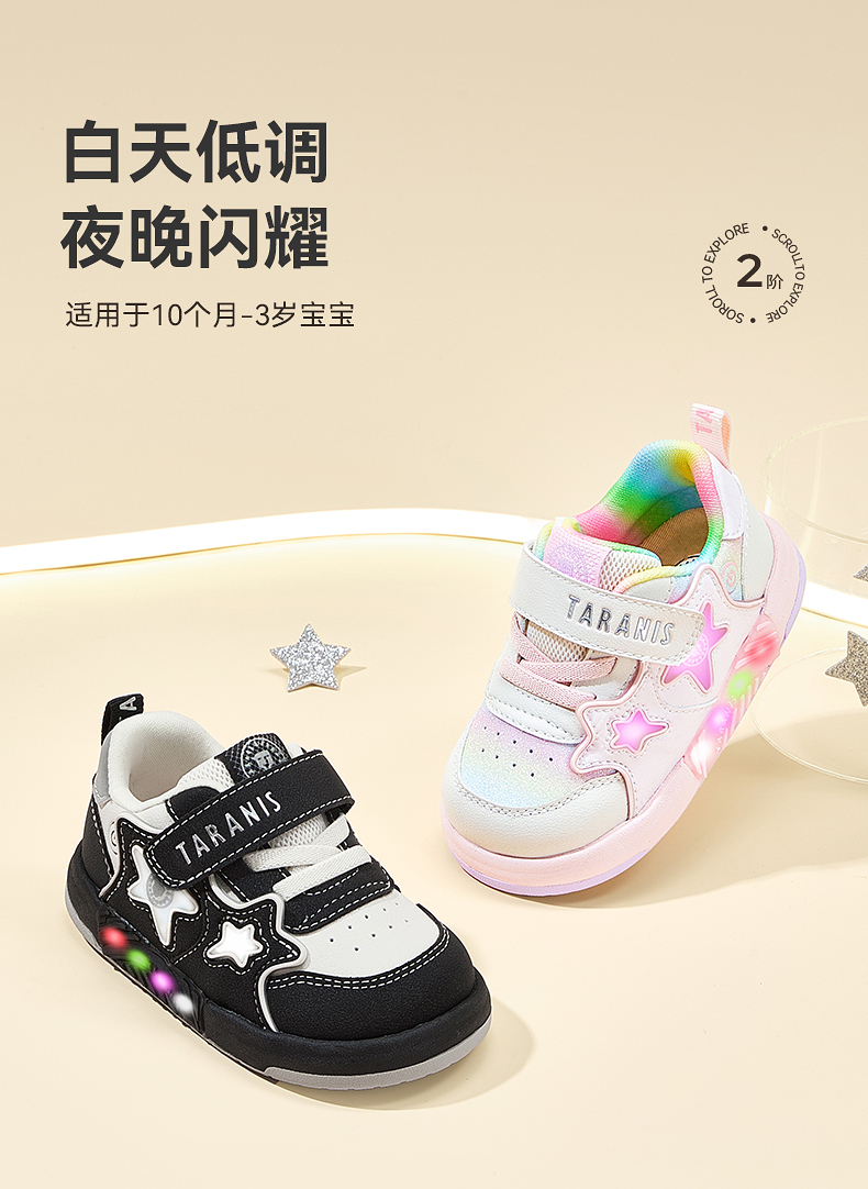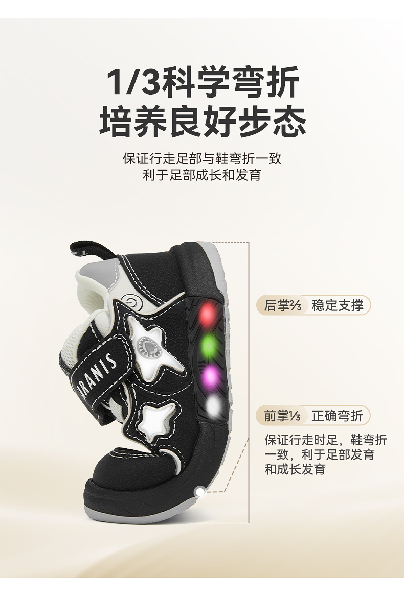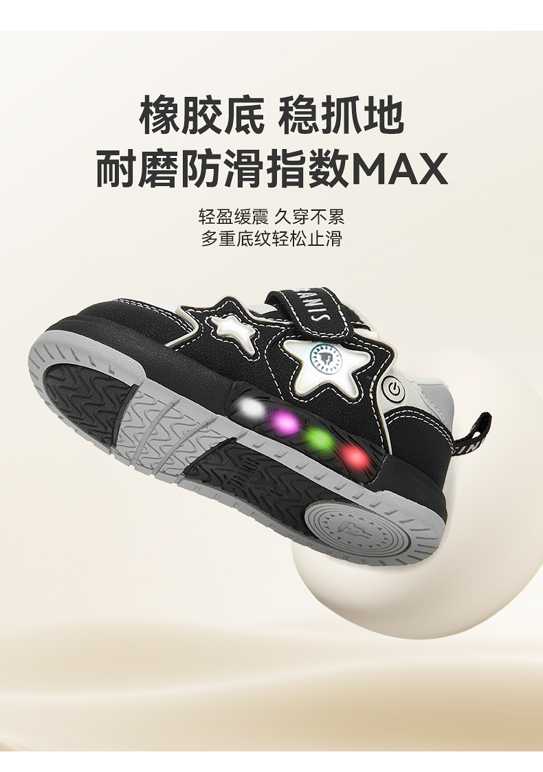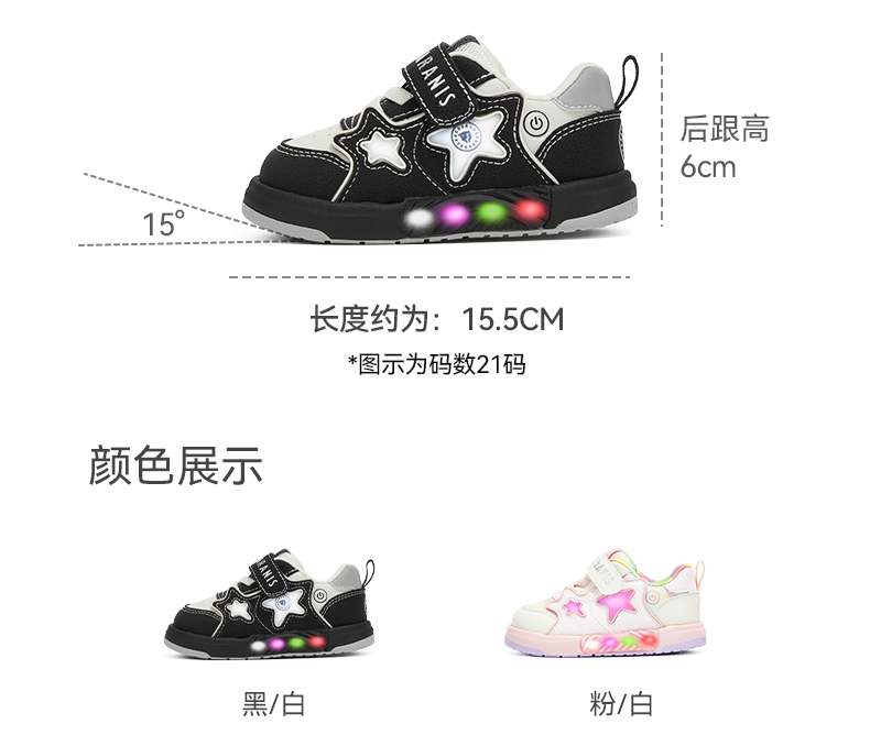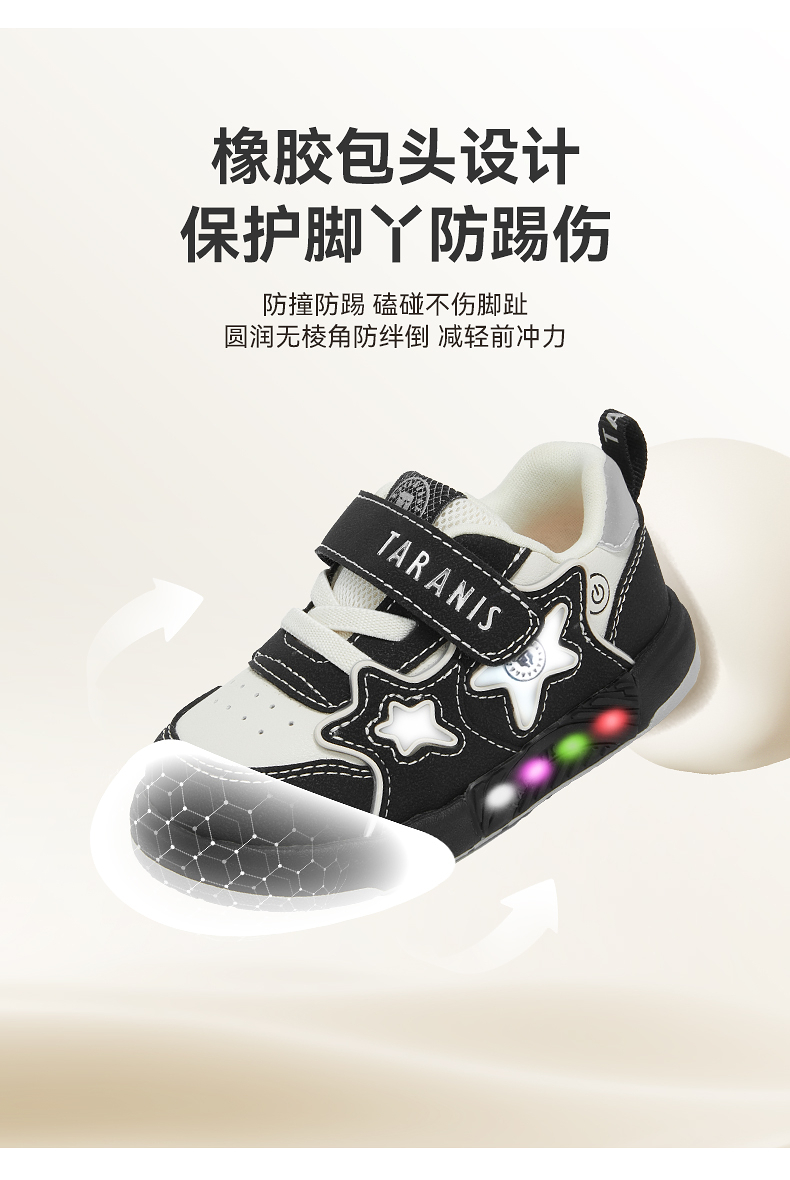 泰兰尼斯童鞋秋季新款男童学步鞋宝宝发光鞋女宝宝透气软底闪灯鞋 T02T5C6568