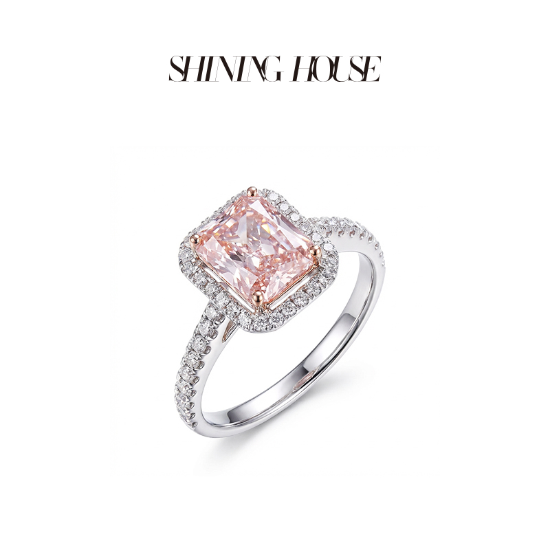 ShiningHouse[培育] 粉钻系列 18k金钻石戒指 公主方形2克拉钻人工真钻人造钻石K金戒指时尚钻石戒指卓越匠心奢耀臻献【此商品不支持7天无理由退货退款】预计3日发货