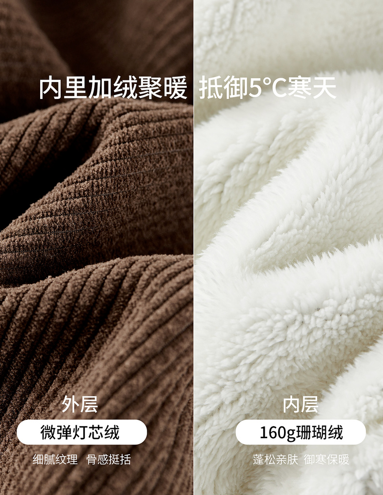 【内购】【加绒保暖】休闲通勤一粒扣宽松内里珊瑚绒不臃肿灯芯绒镰刀裤-154KN2819
