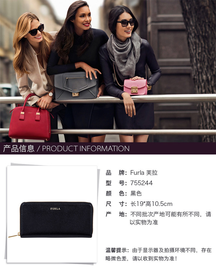 【香港直邮】Furla 芙拉 黑色皮革钱包女士 755244