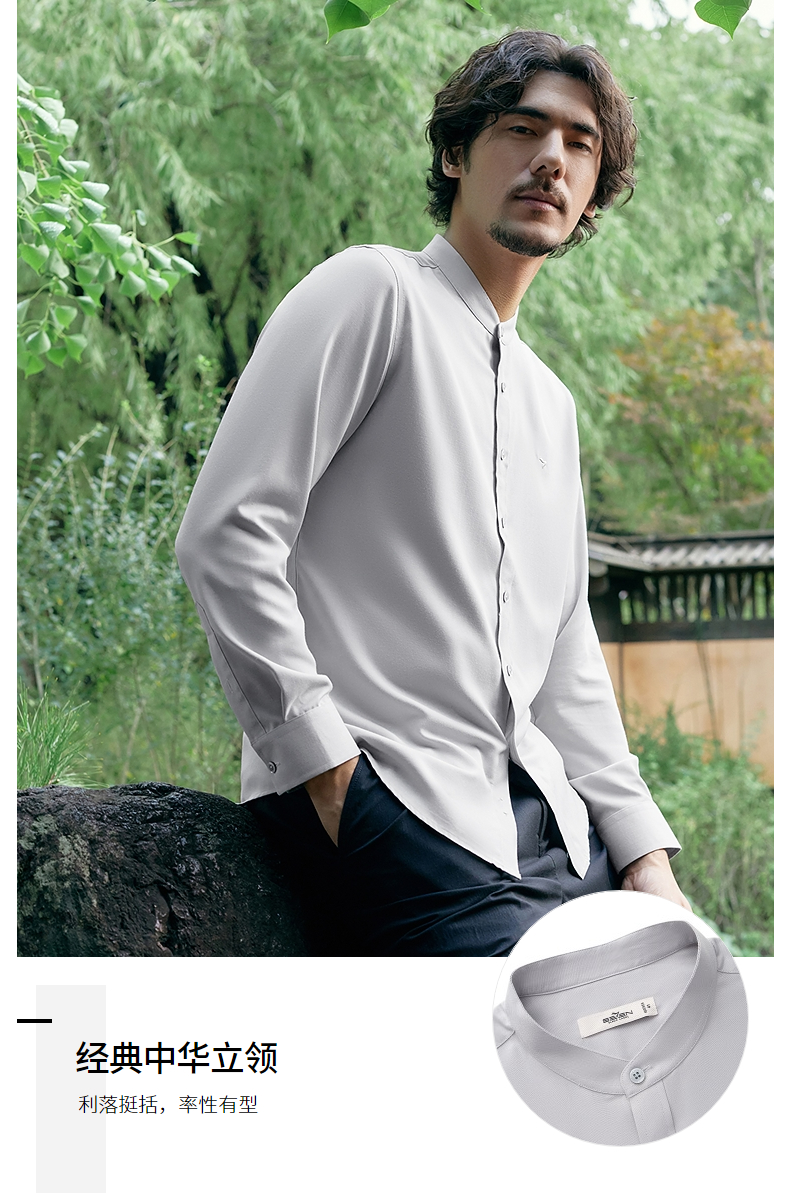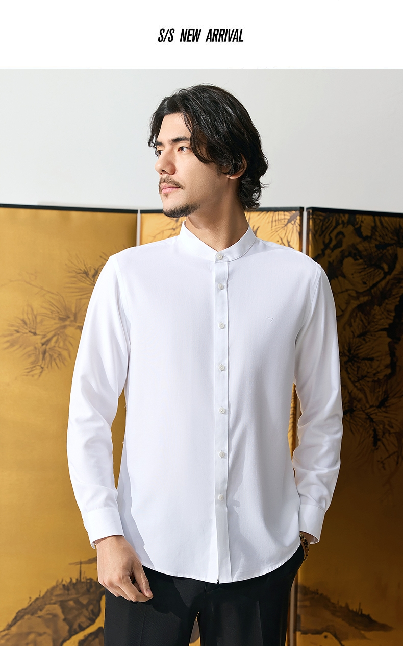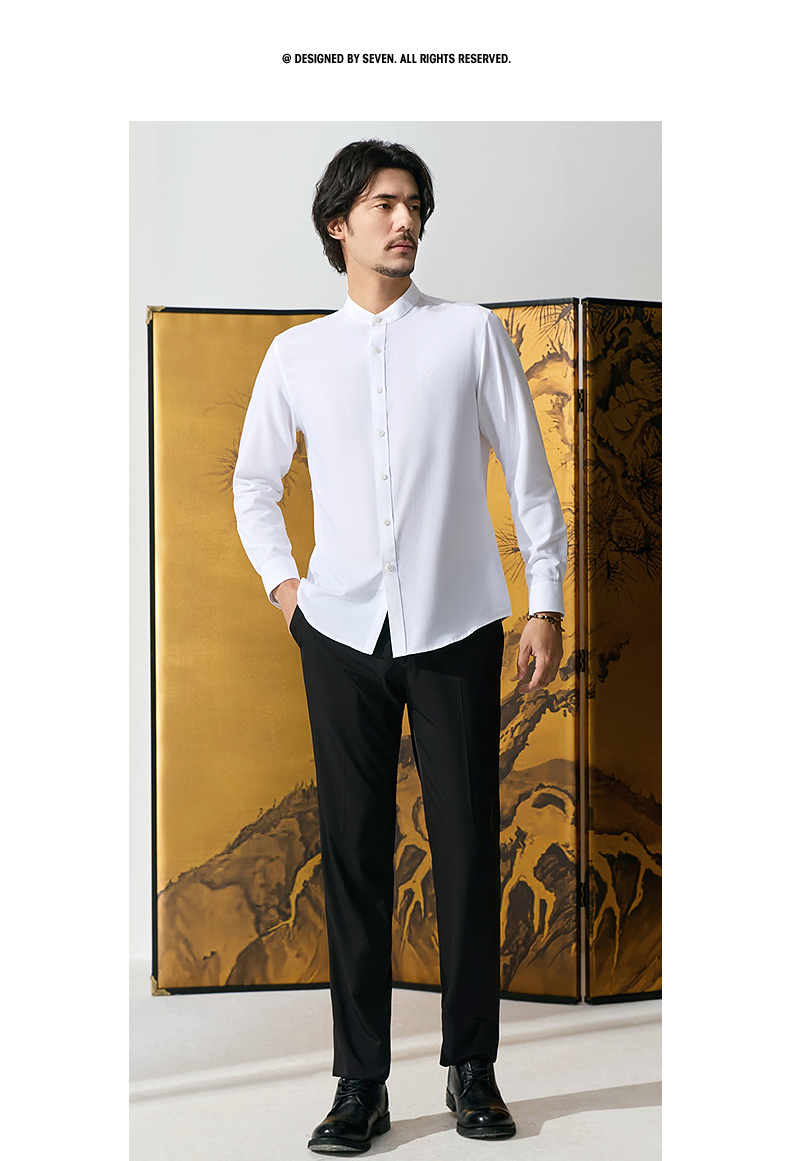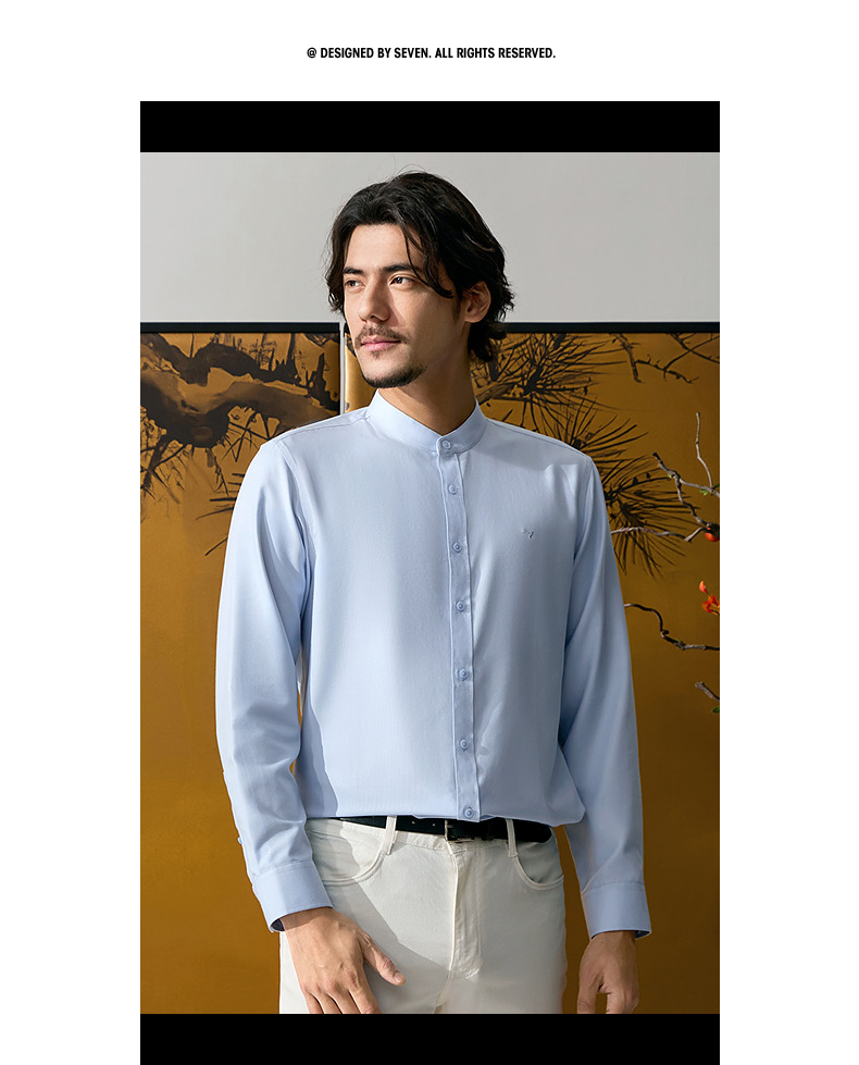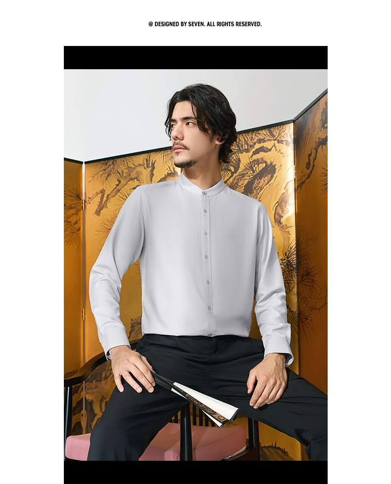 【中华立领】柒牌长袖衬衫男2025春季新款含莫代尔中国风休闲衬衣128A70480
