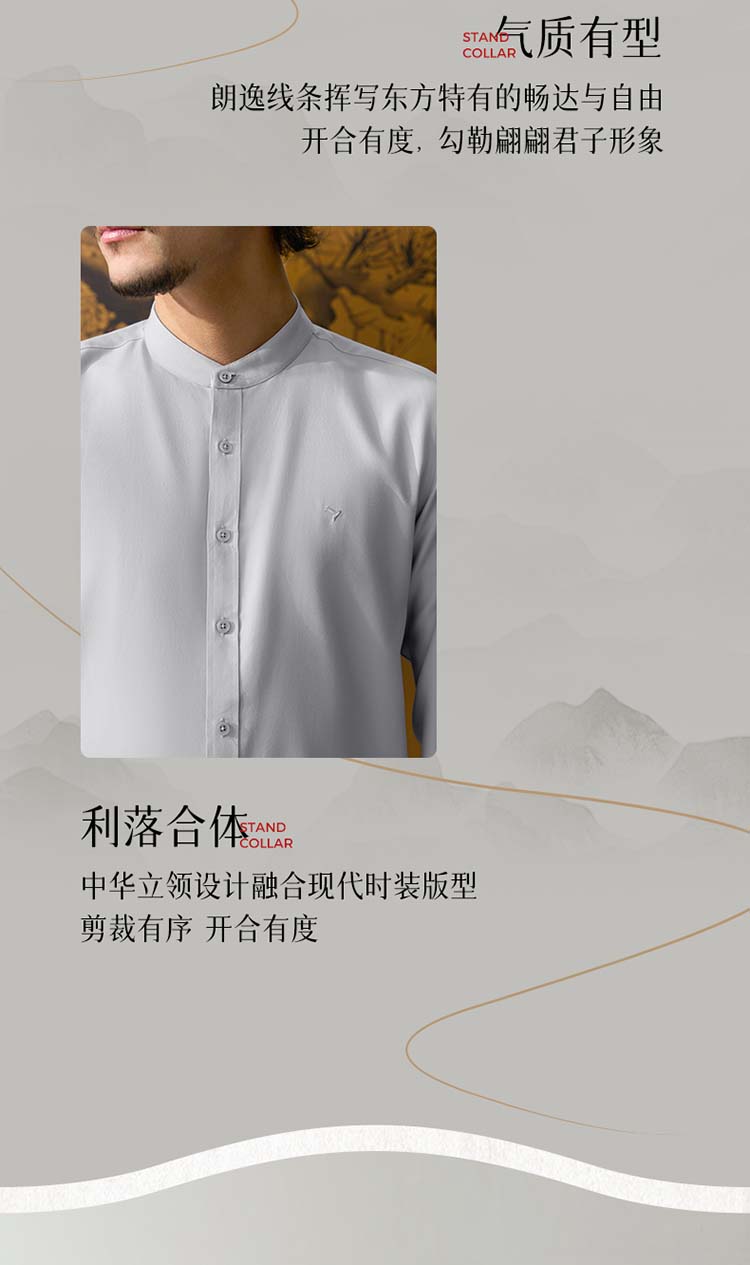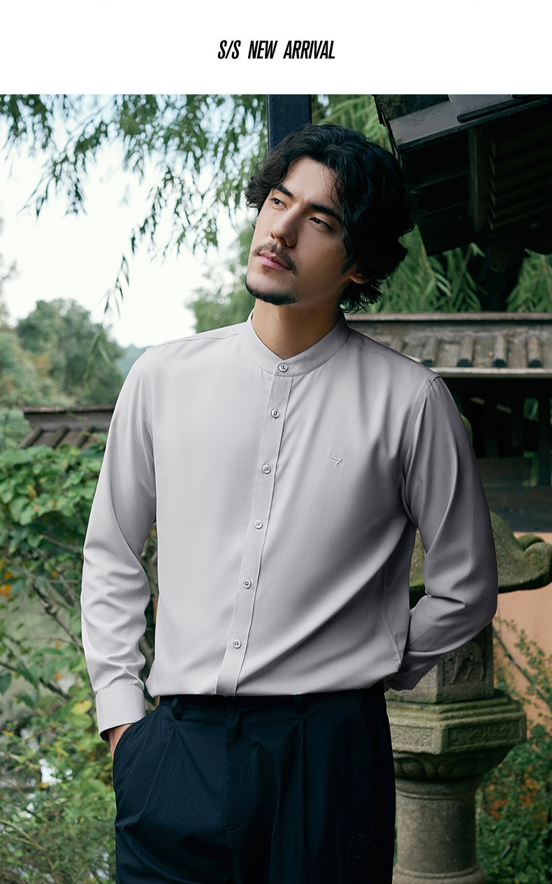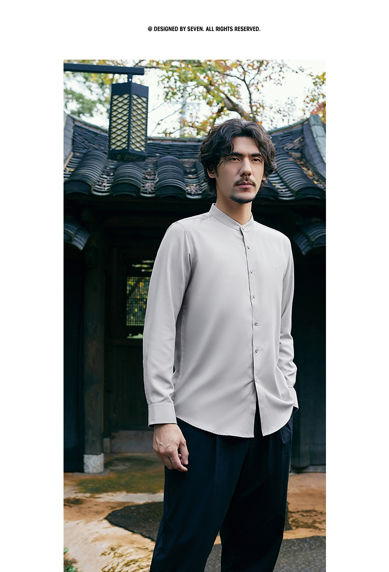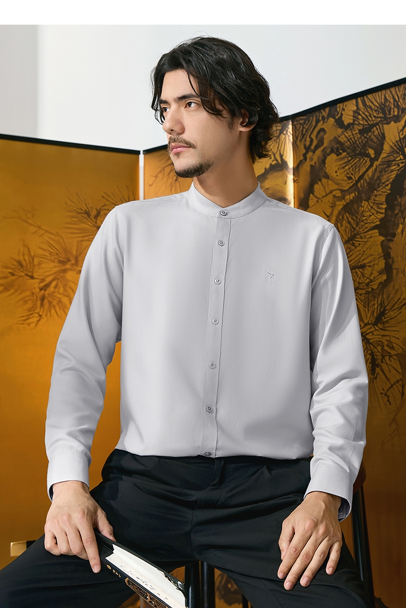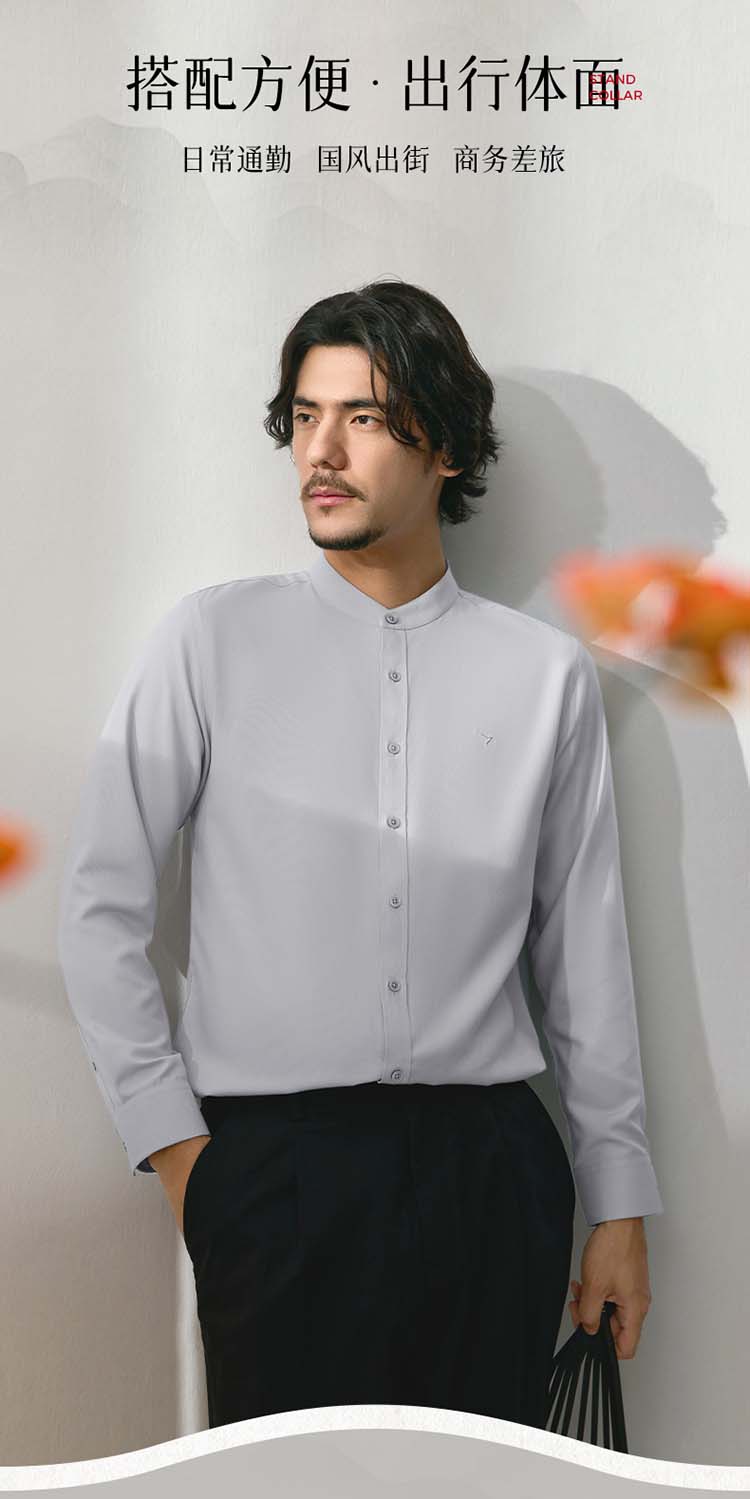 【中华立领】柒牌长袖衬衫男2025春季新款含莫代尔中国风休闲衬衣128A70480