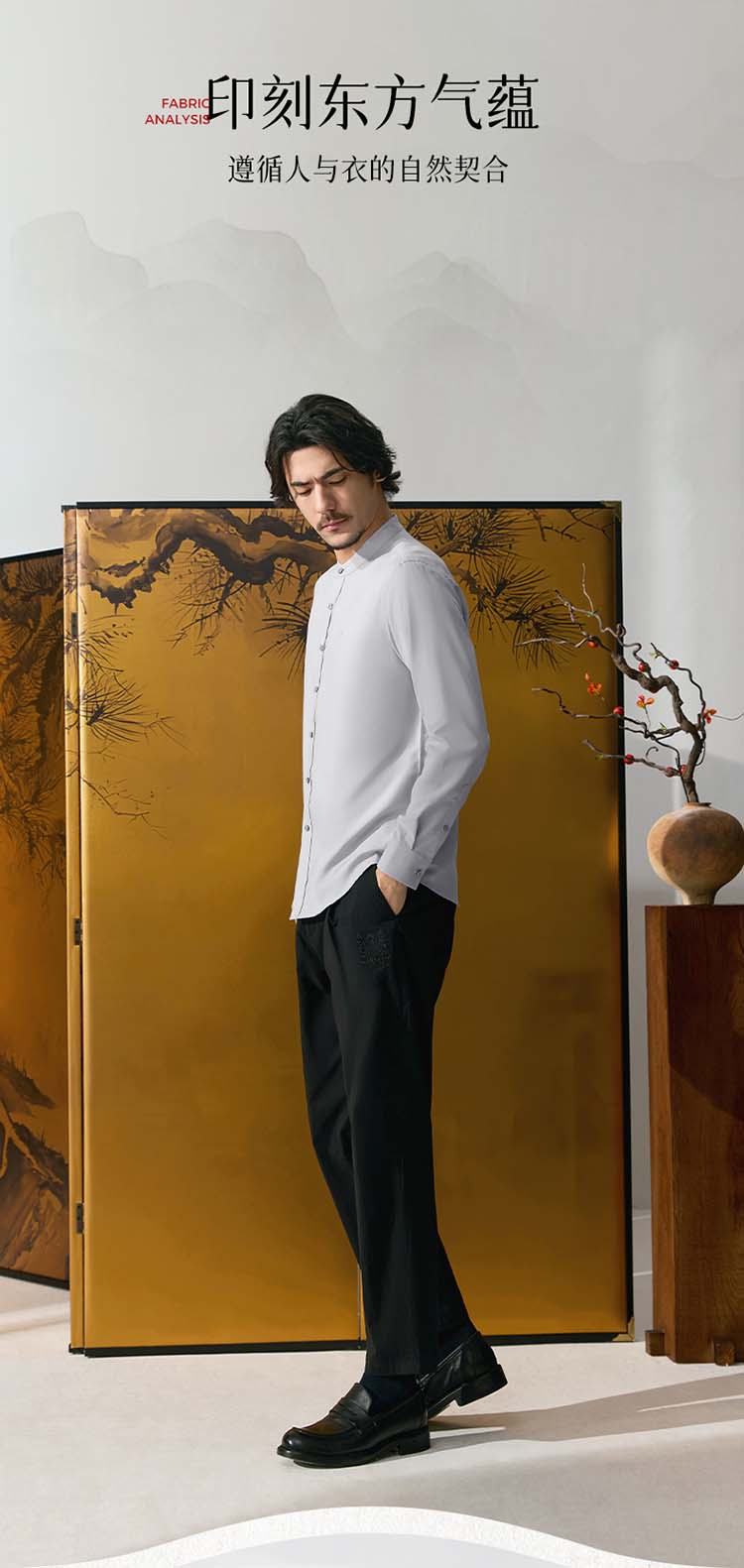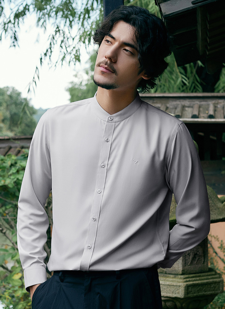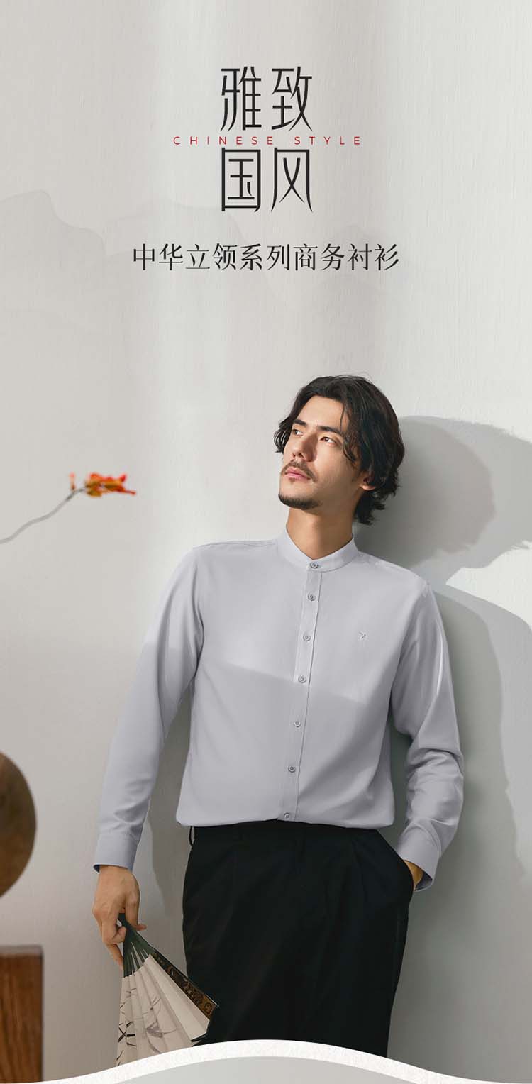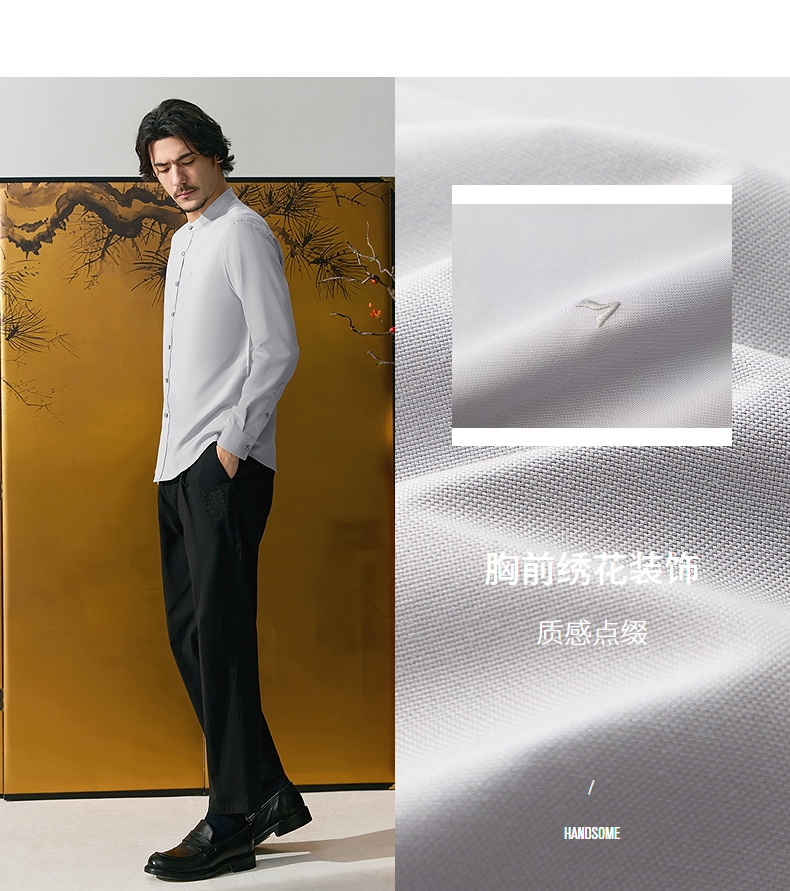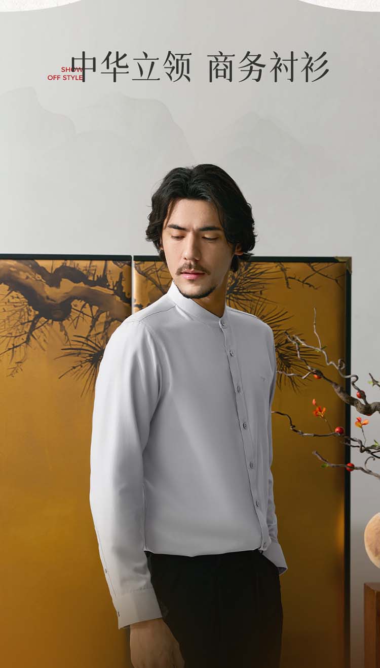 【中华立领】柒牌长袖衬衫男2025春季新款含莫代尔中国风休闲衬衣128A70480