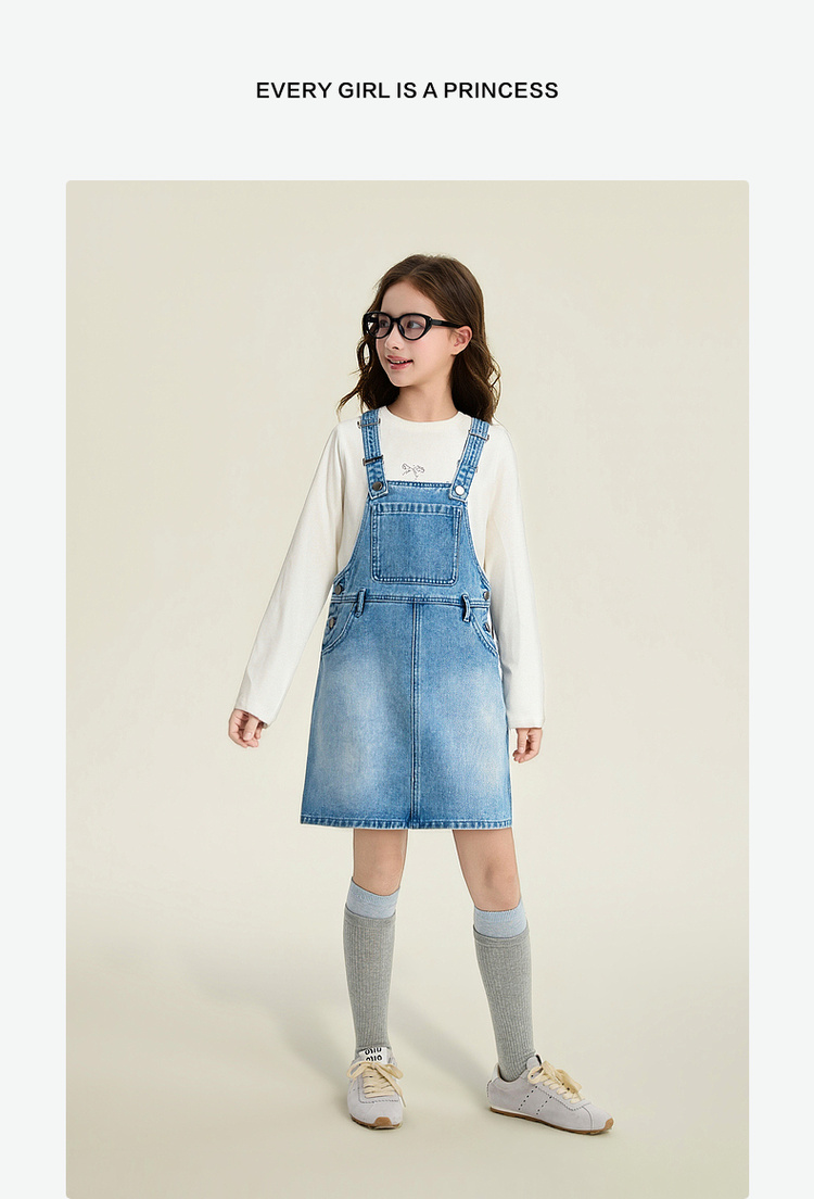笛莎Deesha 童装女童连衣裙2026春新款可调节牛仔背心裙