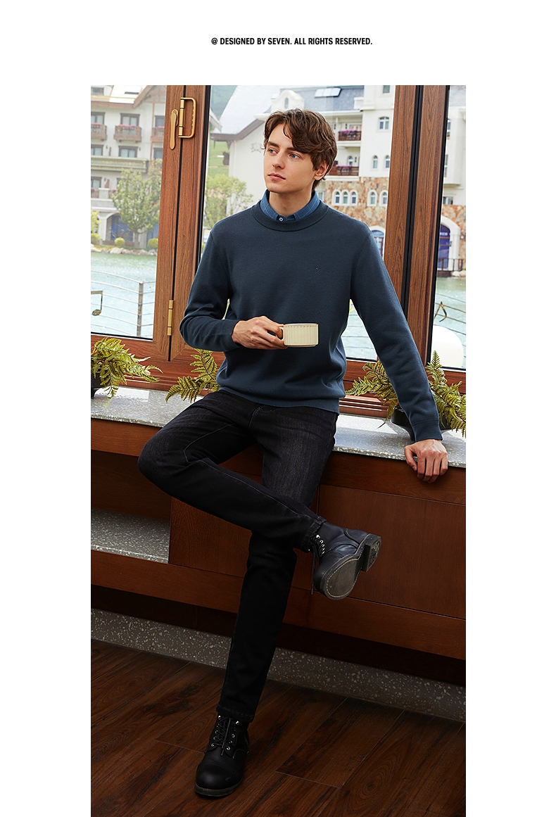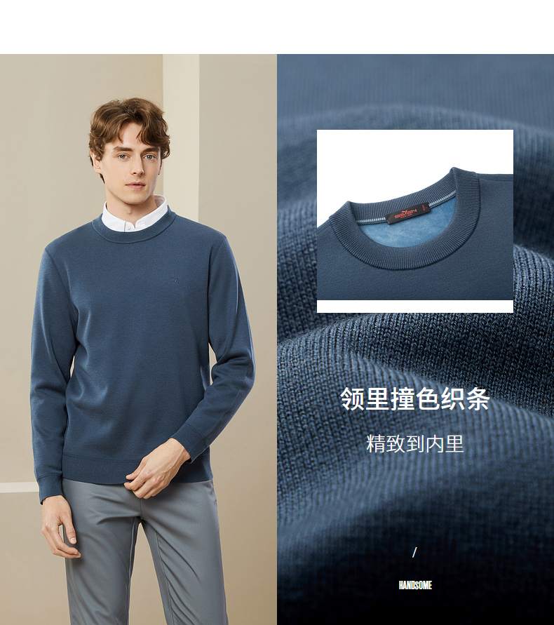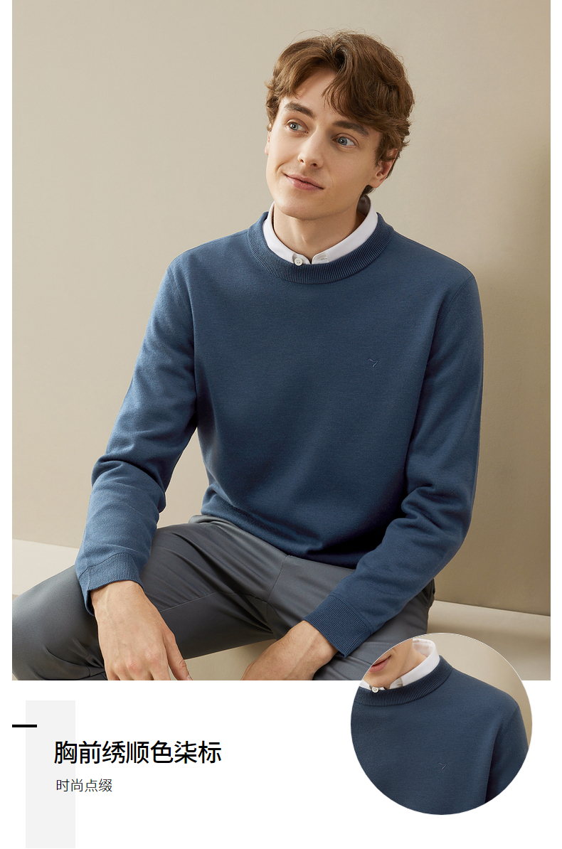 【可机洗毛衫】柒牌毛衣男冬季新款时尚休闲含羊毛圆领针织衫 125Y70280