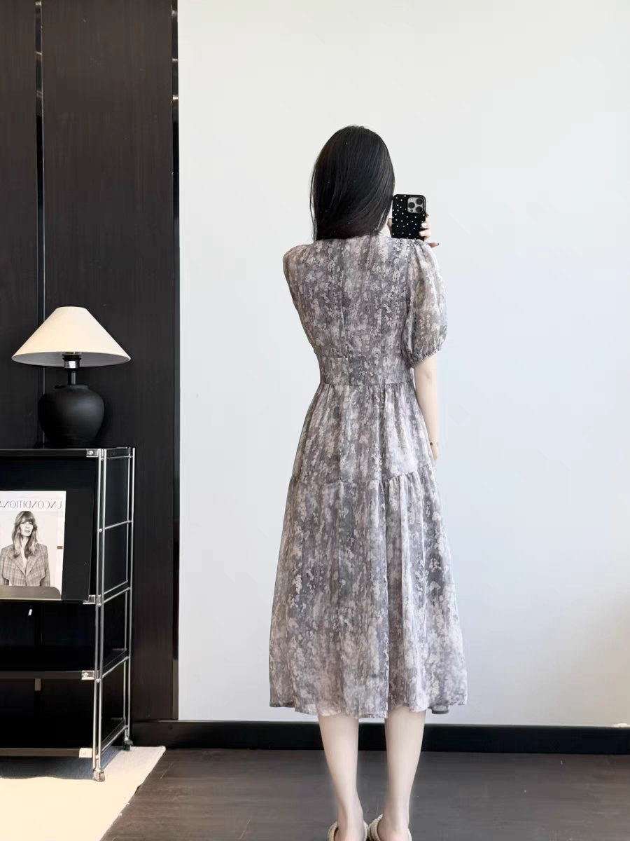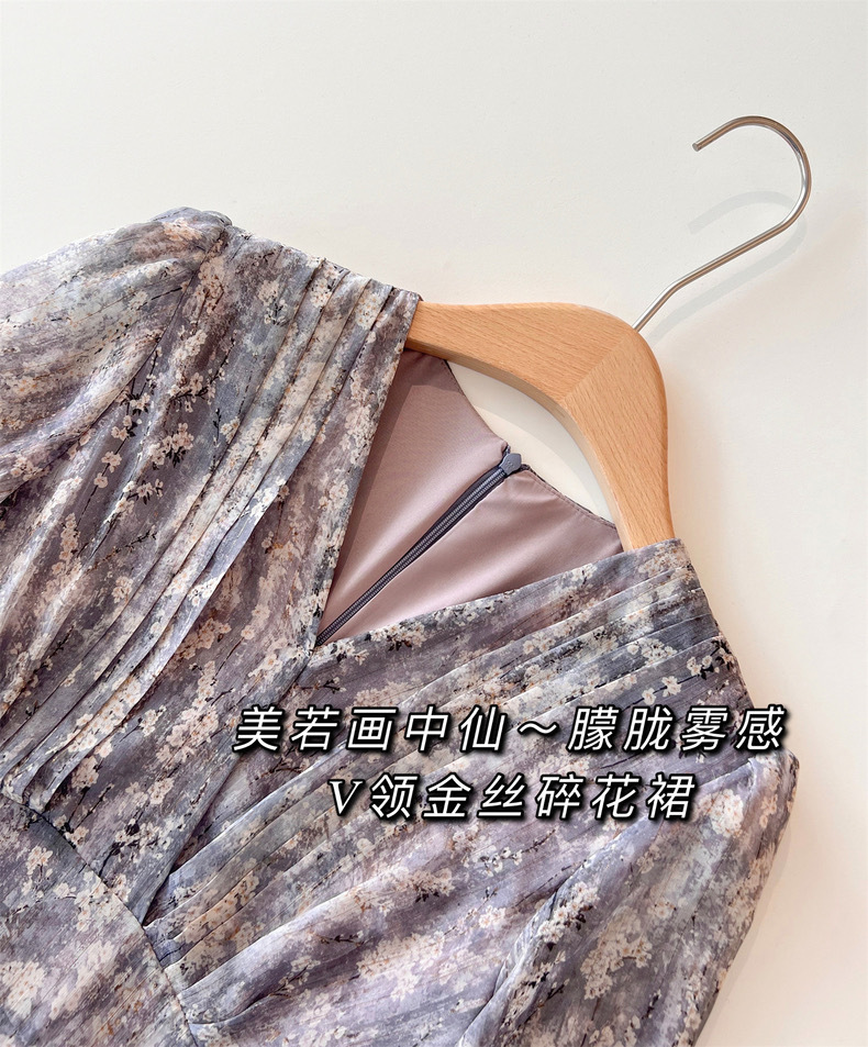 【上身美到冒泡!超绝气质感的印花雪纺收腰连衣裙】气质印花雪纺连衣裙法式