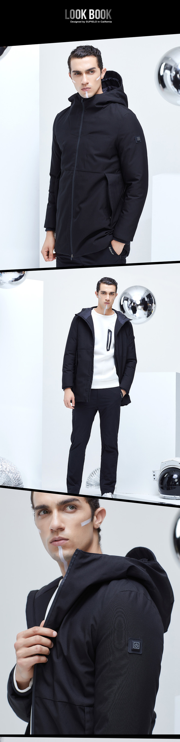 Supield素湃黑科技宇航气凝胶智能加热中长款连帽气凝胶外套冬季