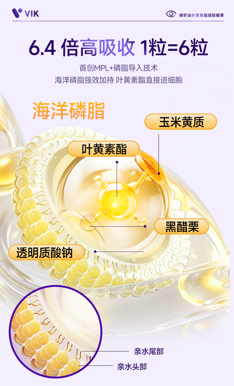 【 5.1超值抢先购 】 VIK 磷虾油叶黄素酯 6.4倍高吸收>单一叶黄素酯30粒/瓶