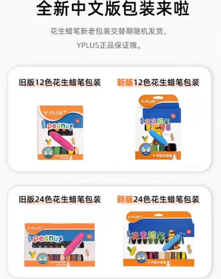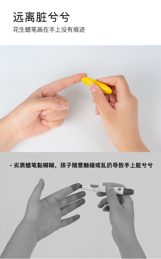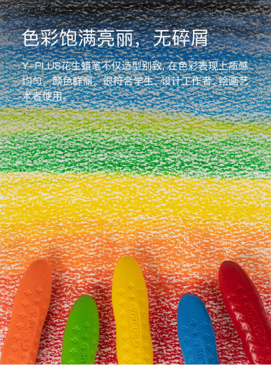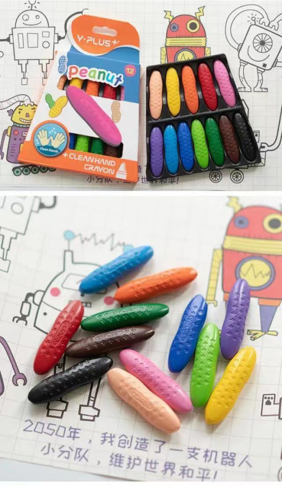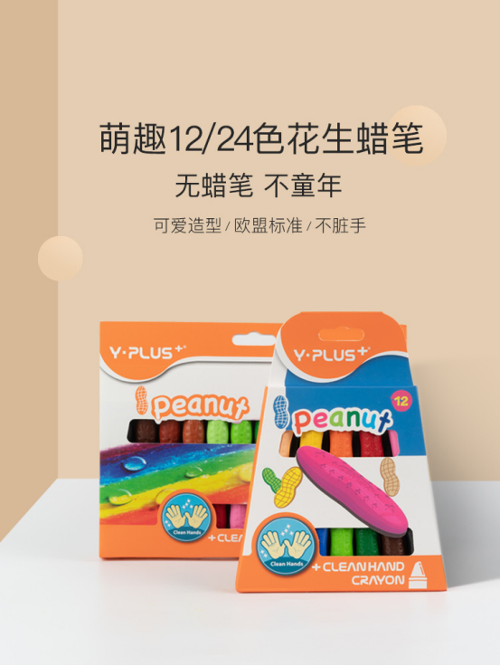 YPLUS花生蜡笔 花生蜡笔真的很棒! 手拿不脏水溶性技术轻松水洗 色泽饱满,容易上色,没有味道,不脏小手