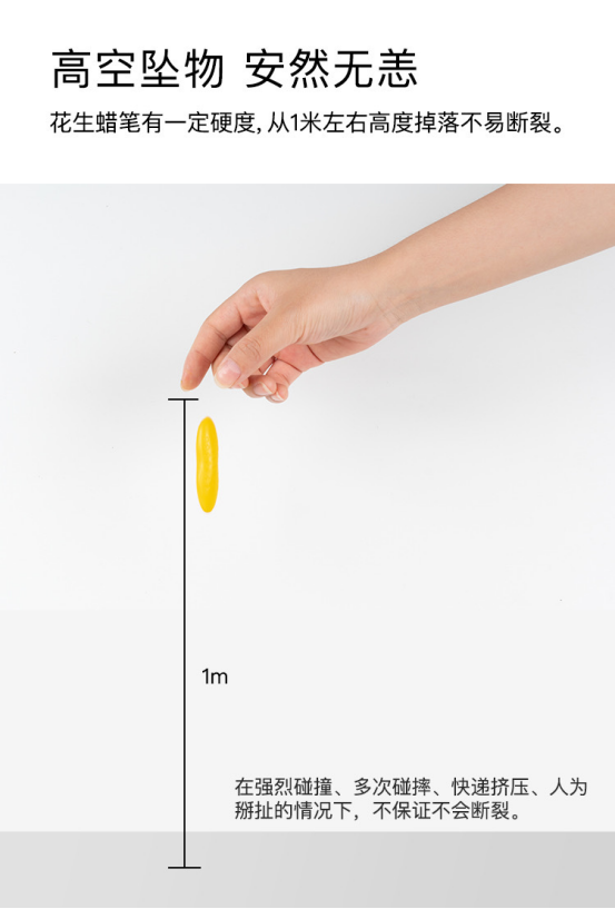 💢普通的棒状蜡笔啪掉到地上就会断头 容易惹得孩子哭 花生蜡笔就很耐摔啦‼️ 除非很用力去摔 一般从书桌上掉下去都不会缺口