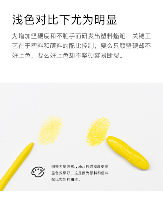 蜡笔成分为高分子微晶蜡,由原产地泰国的自然矿物提炼而来 具有天然蜡皂味,安全无毒,用的色素都是食用级的 它的品质层层把关,步步甄选 符合欧盟标准EN71-3,无后顾之忧 YPLUS在全球80多个国家畅销,质量有保证 给孩子用的,安全永远是第一位的,给宝宝放心买~