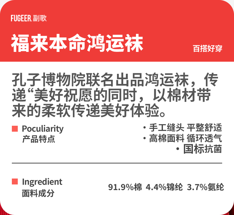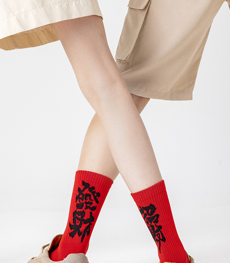 副歌2026 马年本命年红色中筒袜男女同款