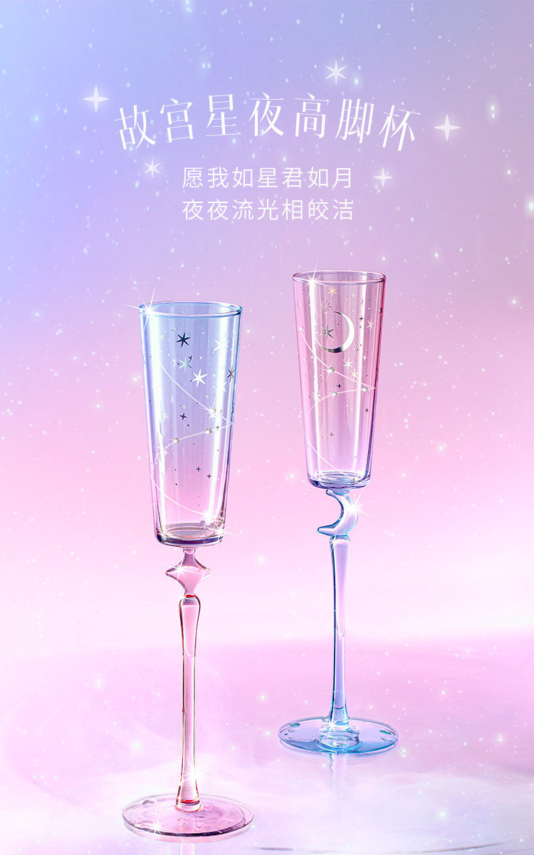 【故宫礼品】星夜高脚杯香槟对杯酒杯文创乔迁生日新婚结婚订婚礼物