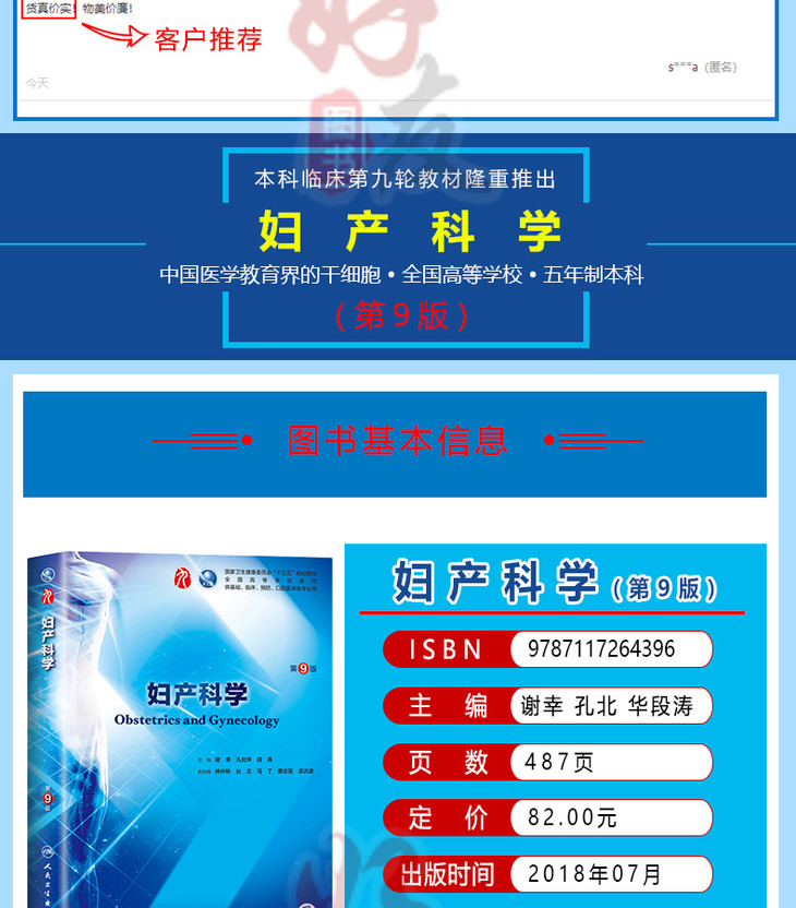 妇产科学第9九版谢幸 孔北华段涛可搭配内外诊断儿科病理学 十三五规划教材 本科妇产科学第9九轮 人民卫生出版社9787117264396