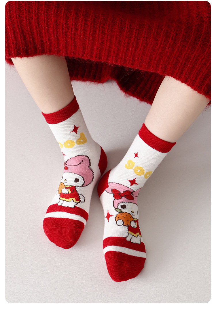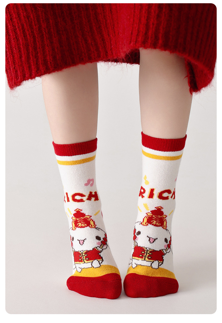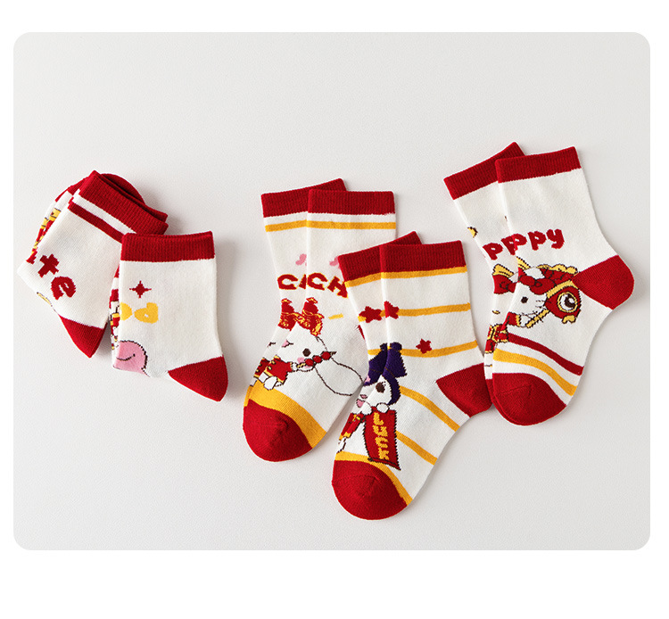 【29.9/5双】儿童袜子秋冬红色新年袜男童女童袜子卡通宝宝袜子蛇年中筒袜M