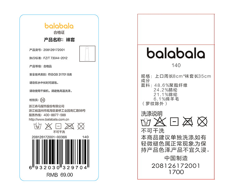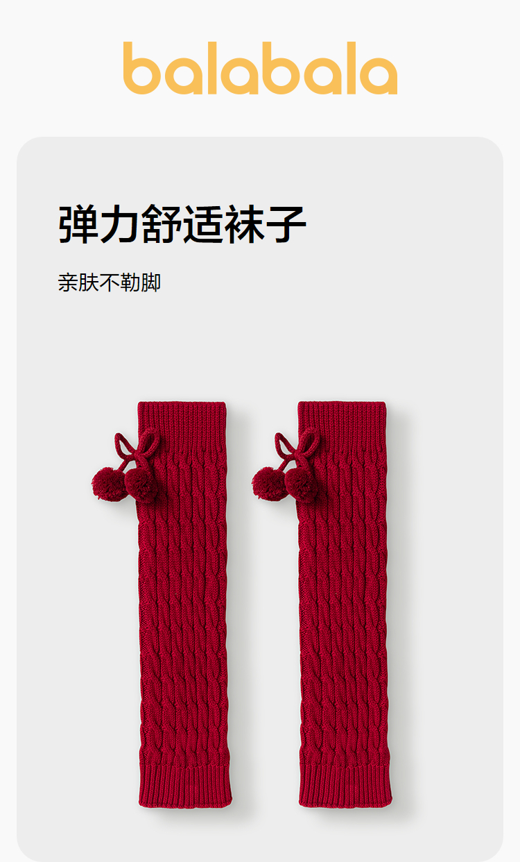 【balaOne】巴拉巴拉儿童袜子春秋女袜套含羊毛堆堆袜套绞花甜美