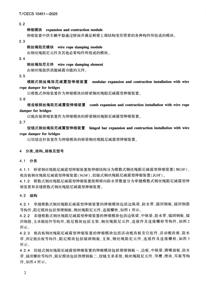 桥梁钢丝绳阻尼减震型伸缩装置(T/CECS 10451—2025)