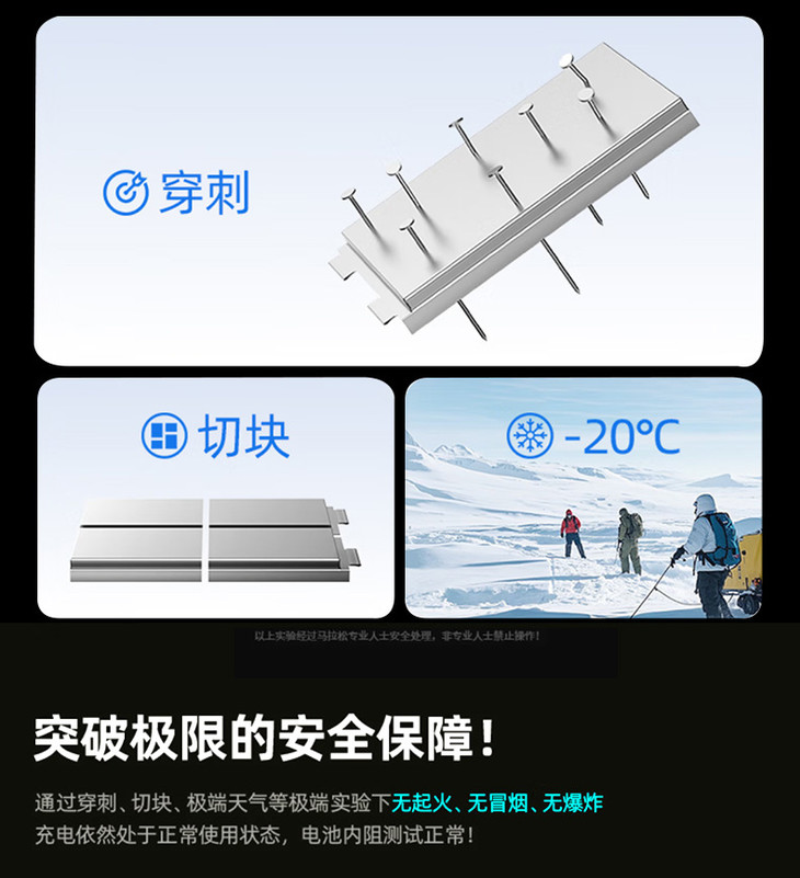 而固态电池在挤压、过充、高温等极端条件下 也能做到不燃、不爆、不漏液 即使被钉子穿透也能正常工作 安全性堪比“防弹电池”❗❗ 说再多都不如实实在在的实验实测👇🏻👇🏻