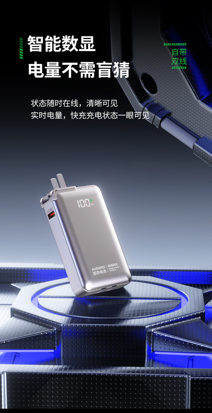 今天这款AURARO的全新新品三合一充电宝 ❗❗ 业内首款研发固态电池做充电宝 做到了军工级安全,无起火、无冒烟、无爆炸风险❌ 还把充电器+充电宝+充电线三件套焊在一起了 每次出门都不用再单独带头 更不用带一堆线材,一物解千忧