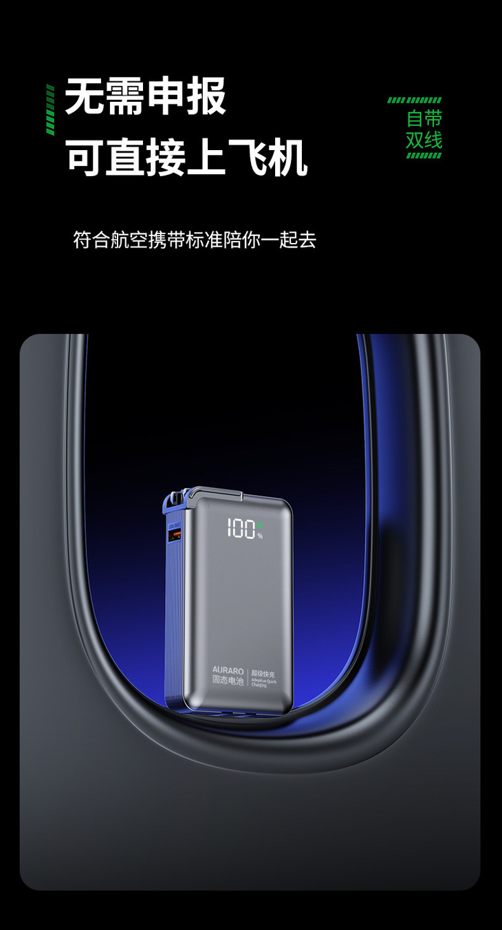 🔻AURARO三合一充电宝有明确的国家3C认证! 符合国内/国际航空运输标准 上飞机、坐高铁都OK 无论出差还是旅行都可以轻松随身携带 自由出行不受限