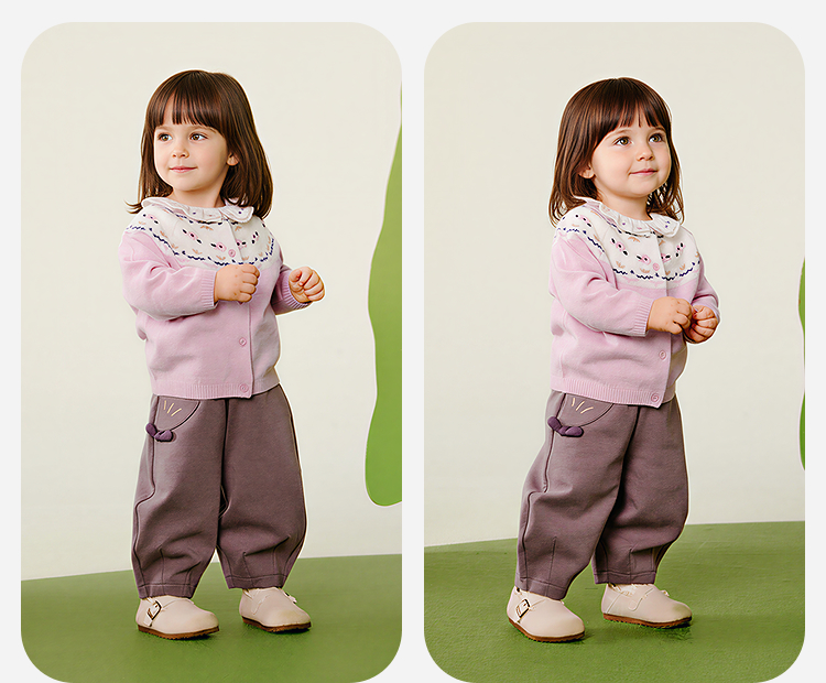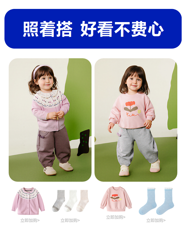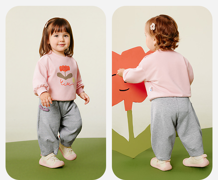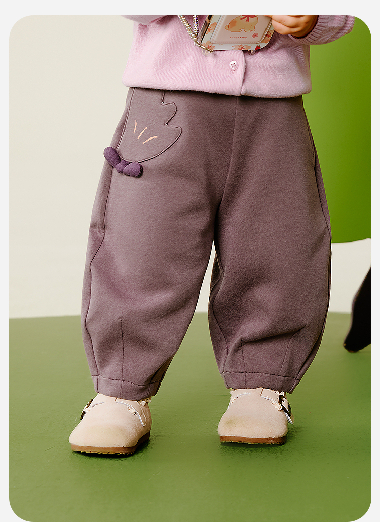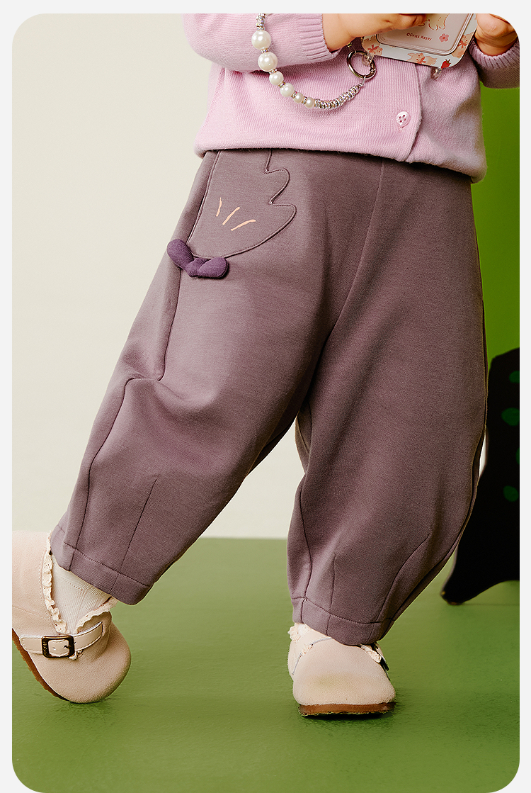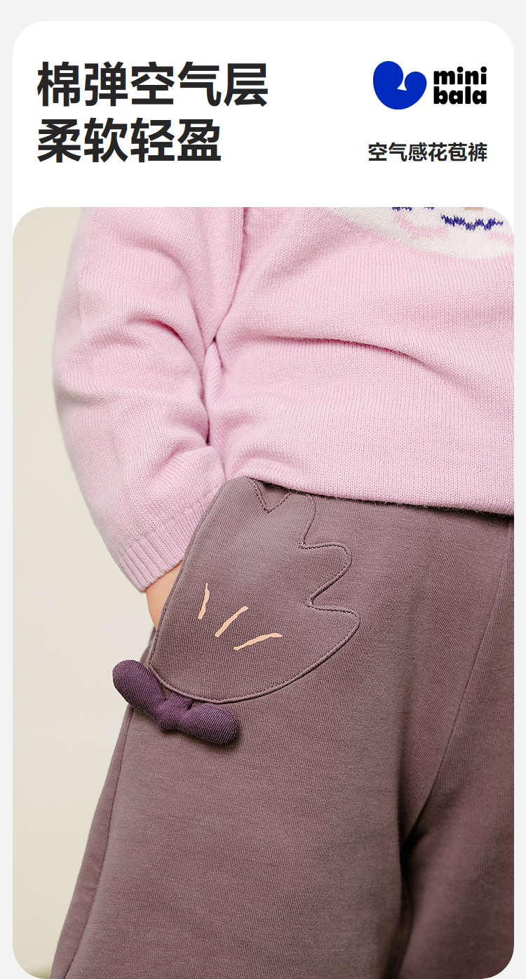 迷你巴拉女童裤子秋萌趣宽松柔软花苞裤宝宝百搭长裤