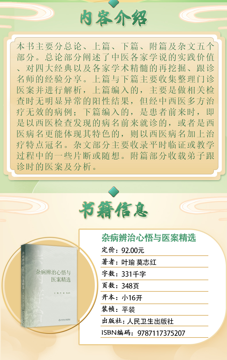 杂病辨治心悟与医案精选 叶瑜 莫志红 主编 中医各家学说的实践价值 中医经典及各家学术精髓的再挖掘9787117375207人民卫生出版社