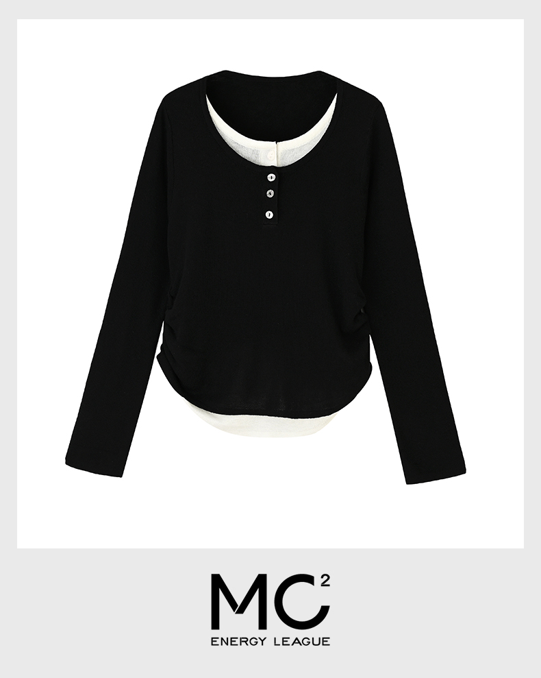 韩版拼接抽绳打底衫M4232605