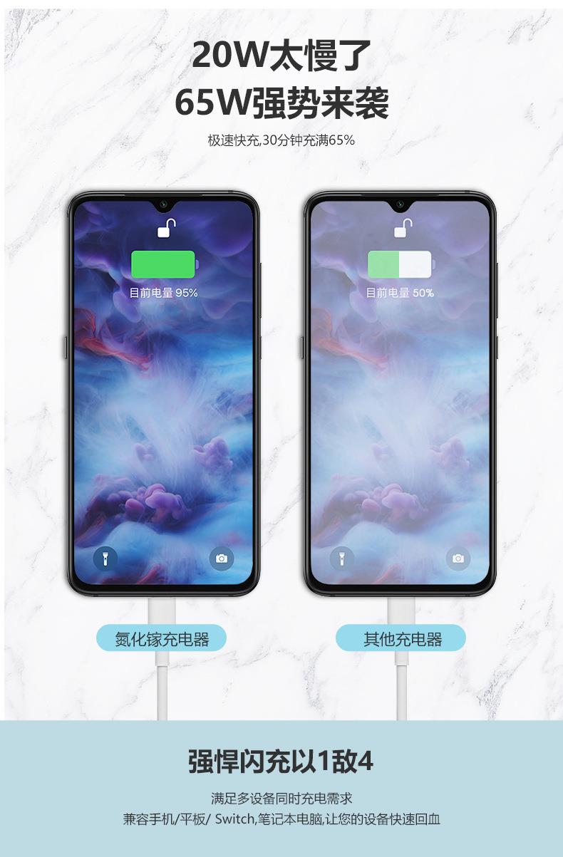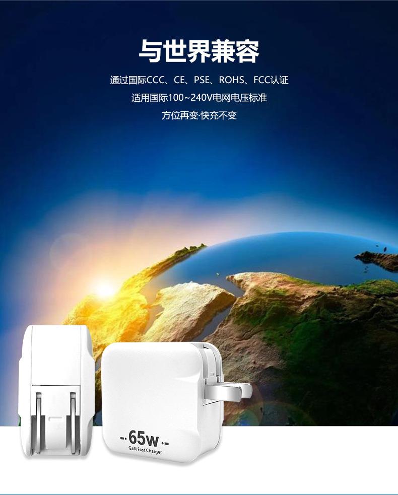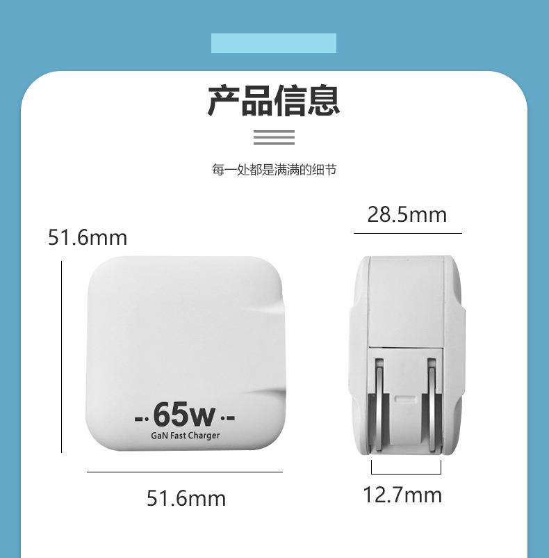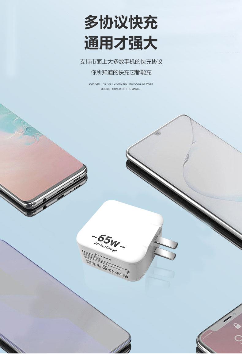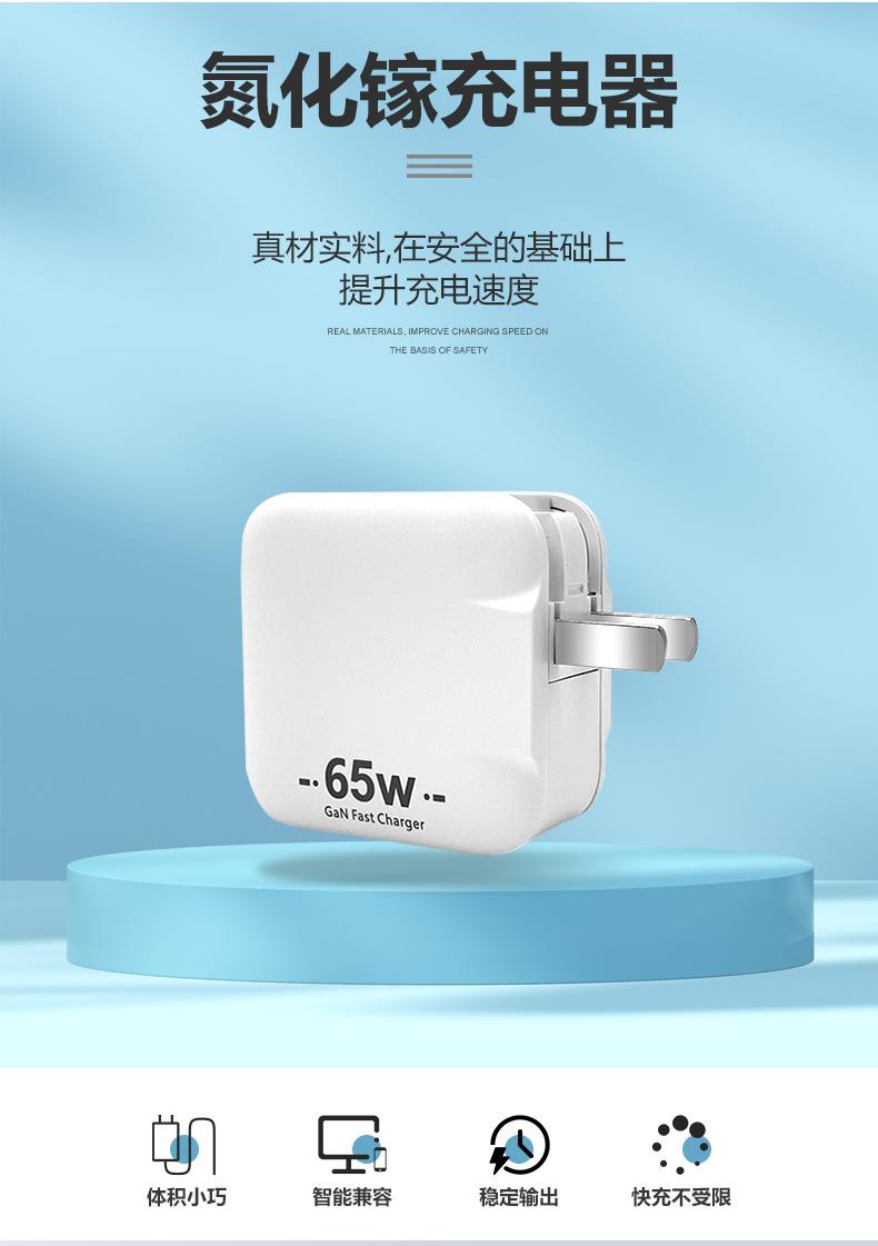 多口新款65W折叠手机快充氮化镓充电器双口适用苹果华为PD快充充电器