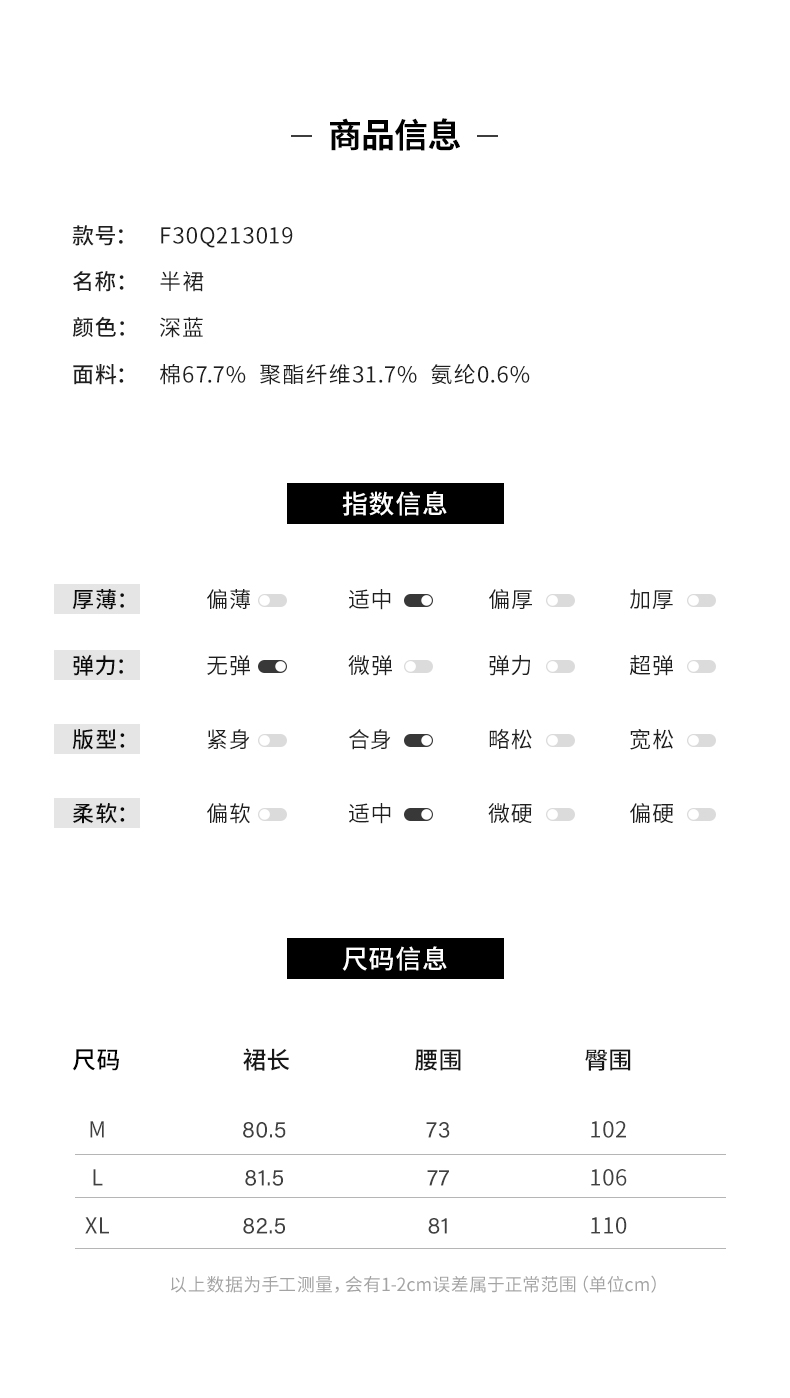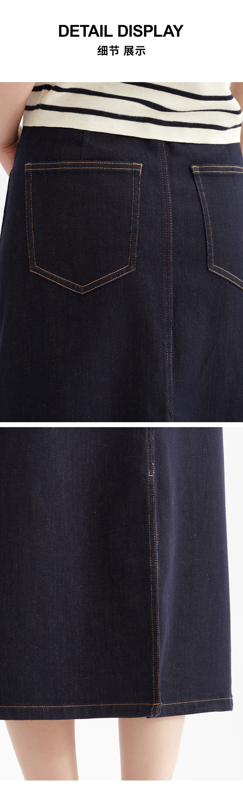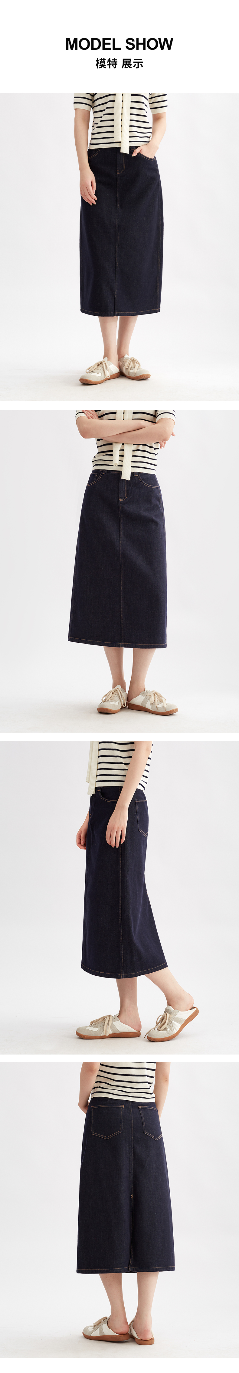 【低调美感】阿菁娜复古百搭后松紧腰牛仔半身裙F30Q213019