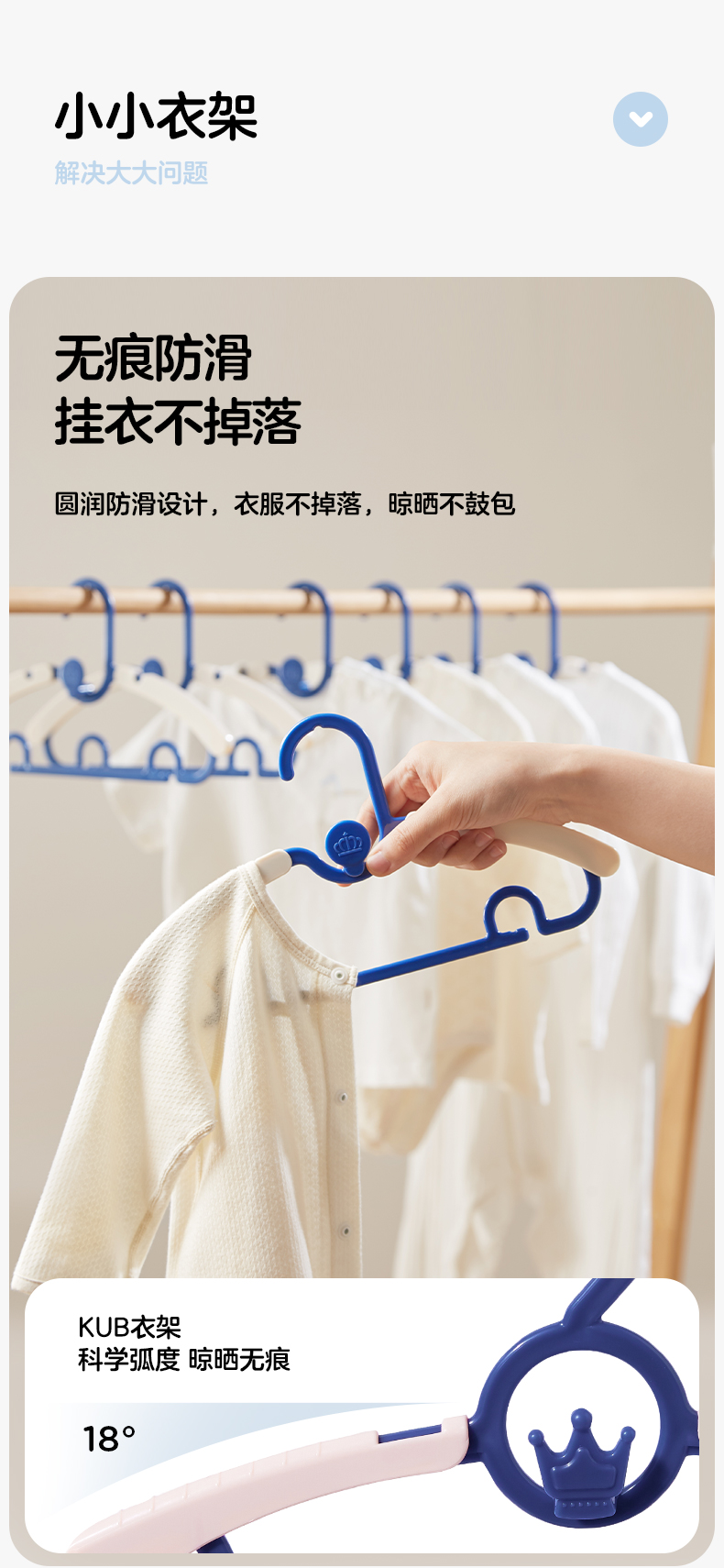 KUB可优比衣架家用儿童衣架小衣架裤架婴儿宝宝多功能加粗防滑