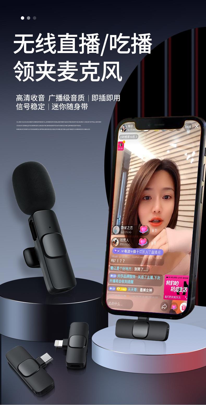 一拖二领夹式无线麦 手机话筒 直播 拾音麦 无线领夹麦克风