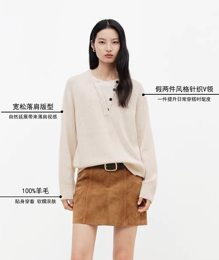 清新软糯,100% 羊毛假两件毛衣