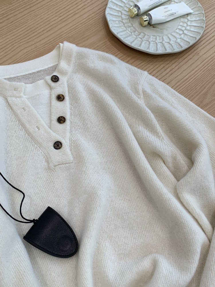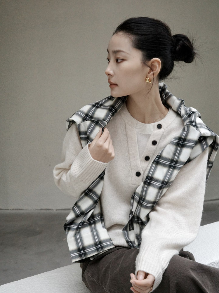 4颗树脂扣点缀,既可以扣合提升利落感,也可以解开 1-2 颗营造松弛氛围,领口弧度贴合颈部线条,不卡脖也不会过度暴露,兼顾优雅与随性。