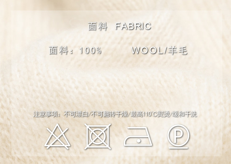 甄选 100% 纯羊毛面料,触感像云朵般柔软细腻,贴身穿无扎肤感!
