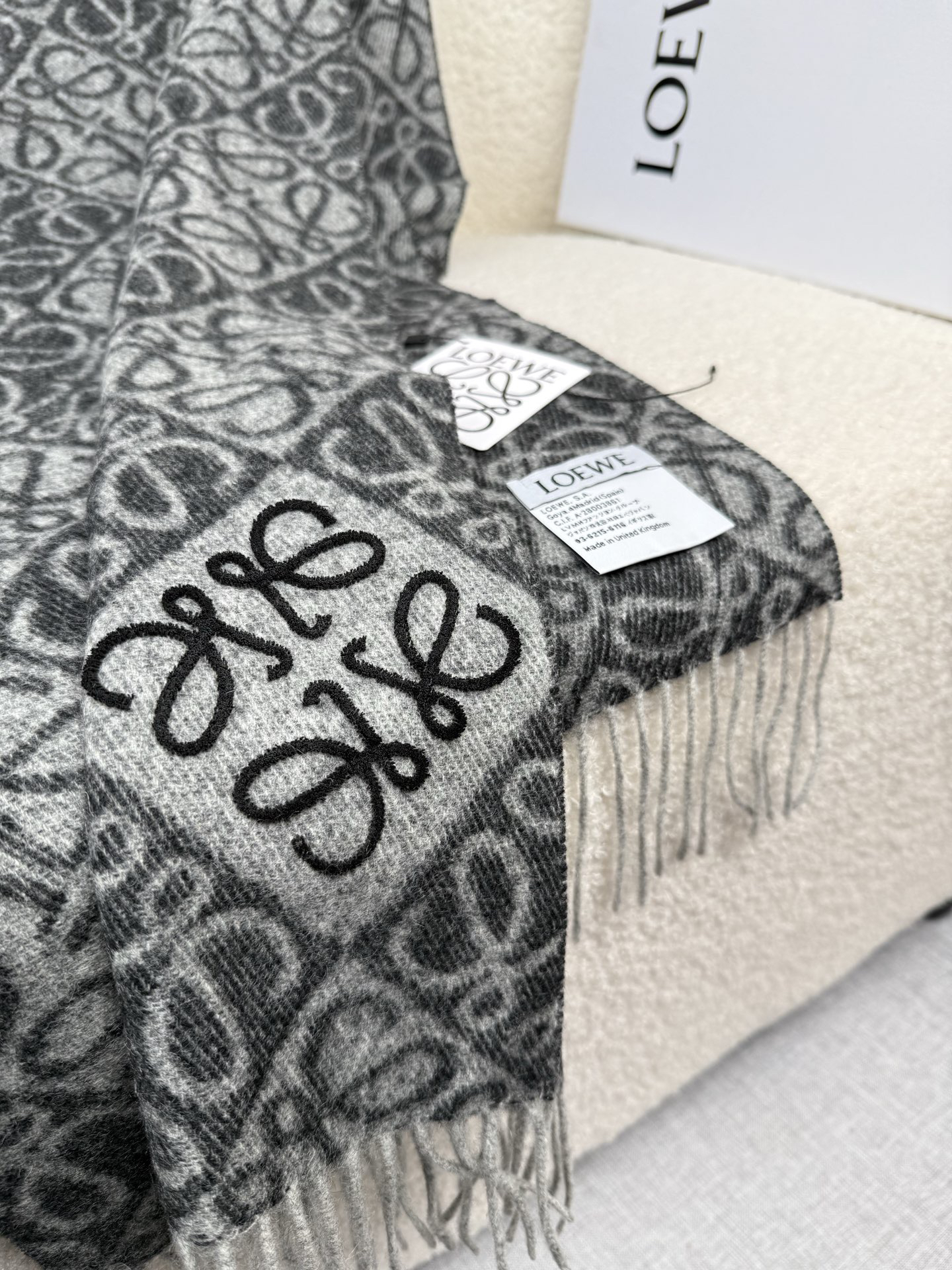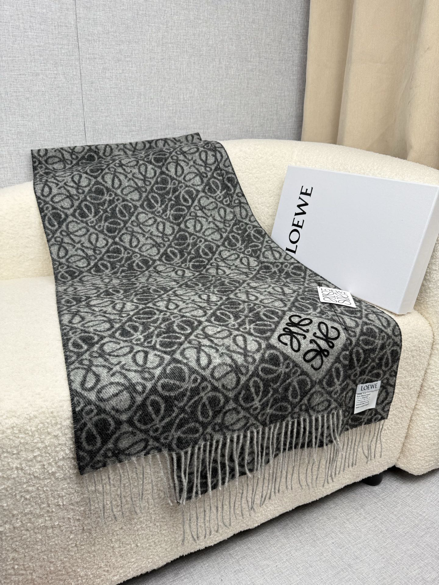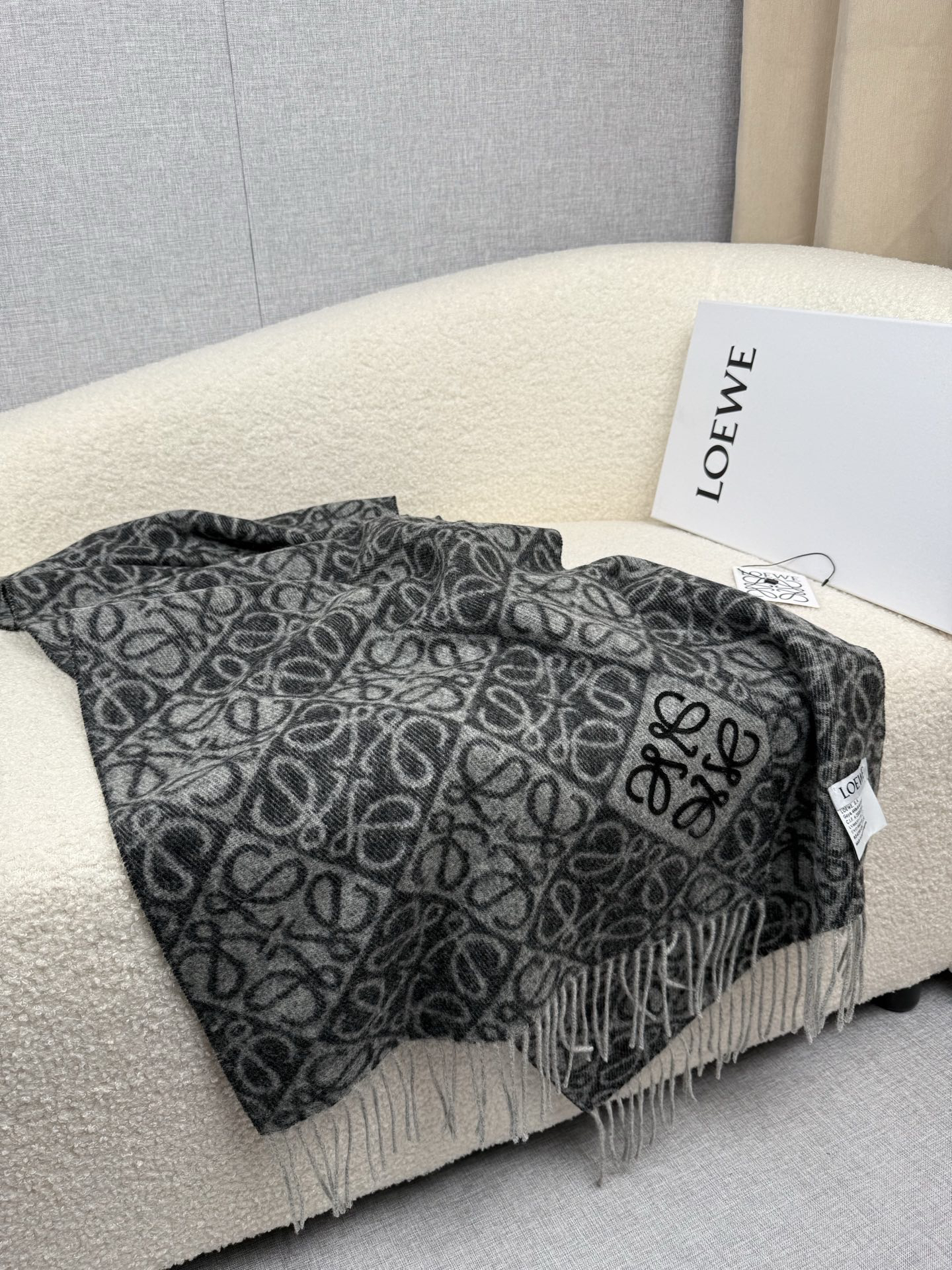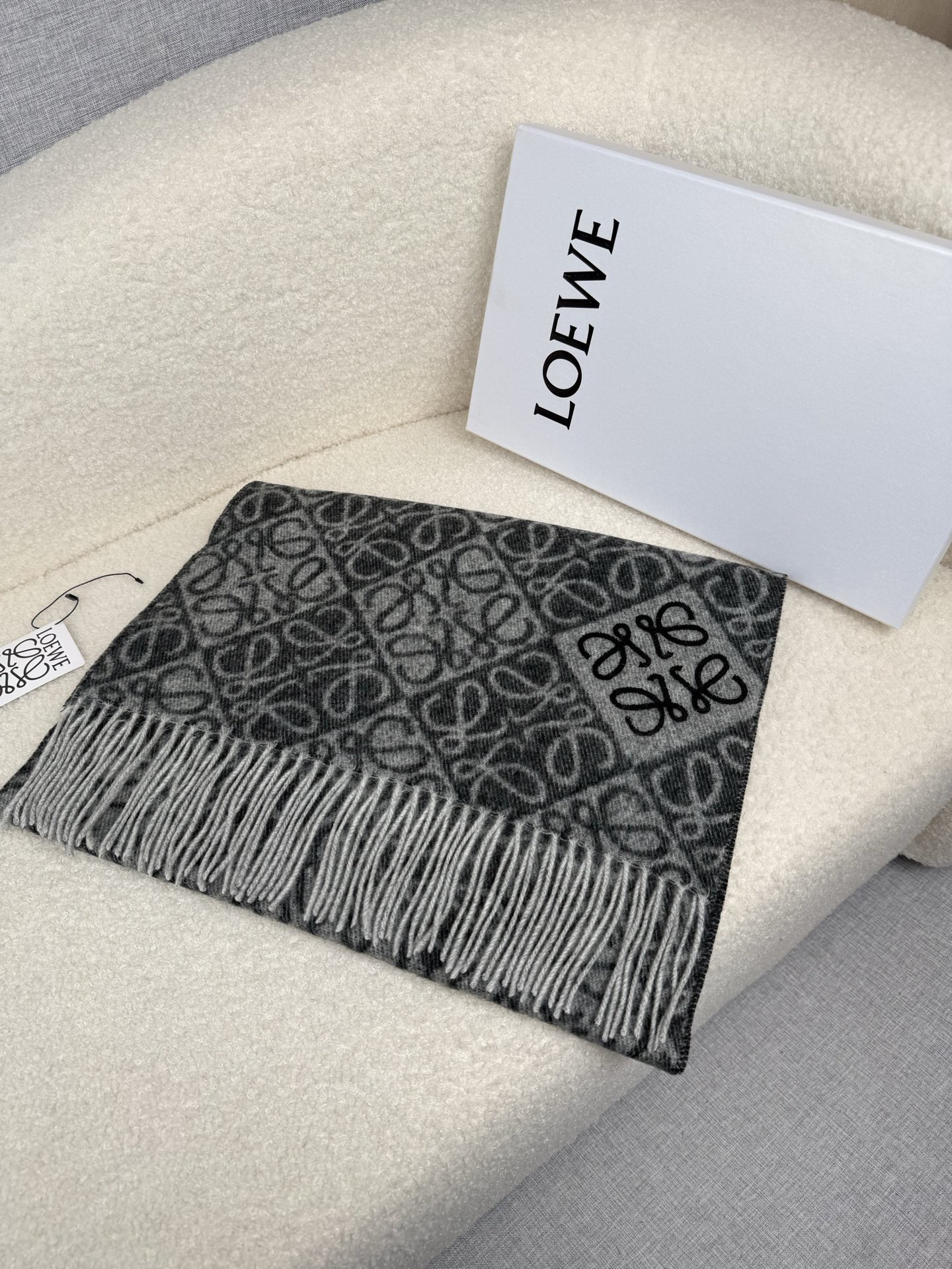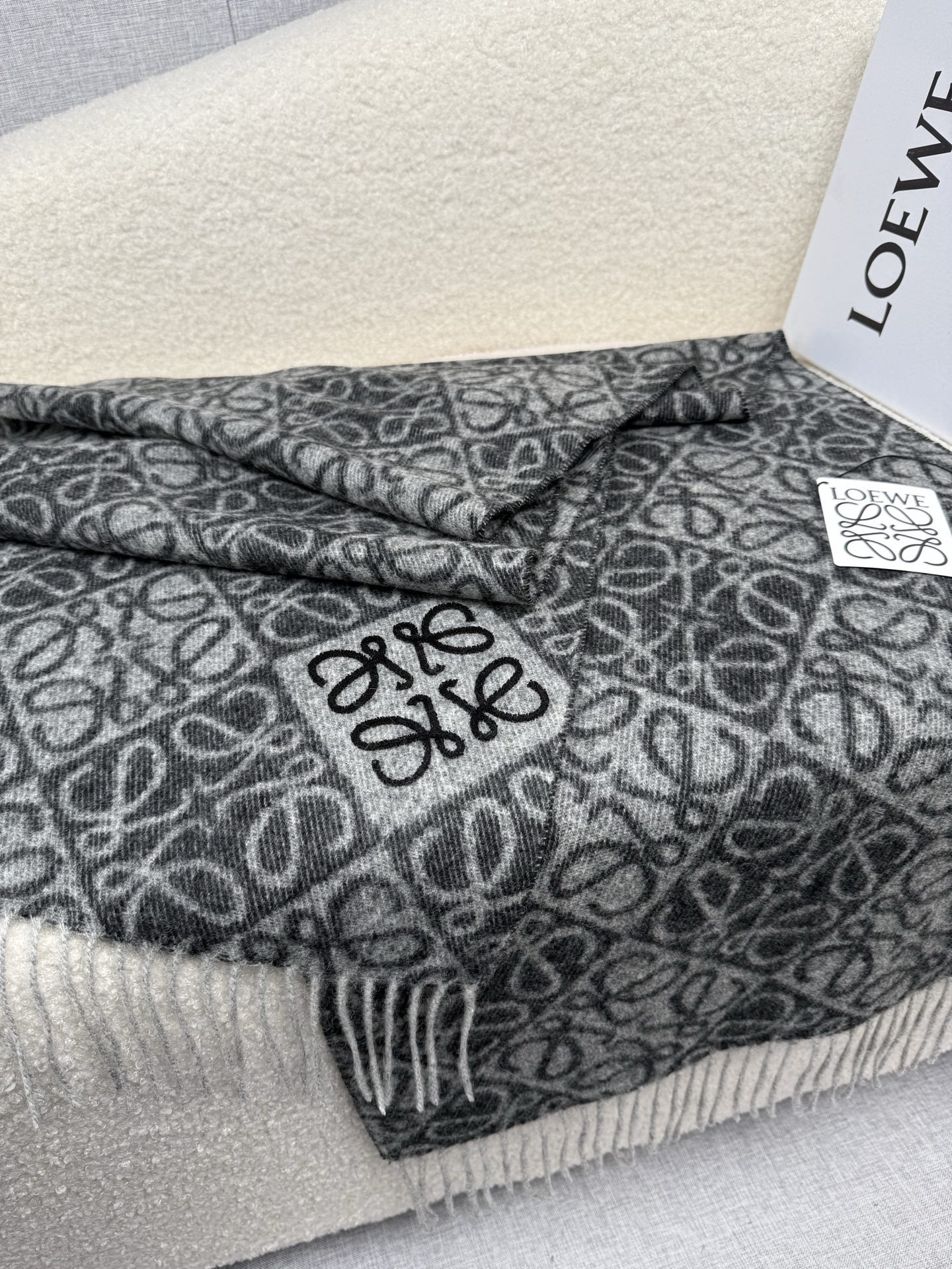 秋冬特惠💰300 罗意威围巾【棋盘格-植绒-刺绣】罗意威logo围巾出新款啦! LOEWE全新logo围巾一深一浅交替的棋盘格斜着排列更加时髦
