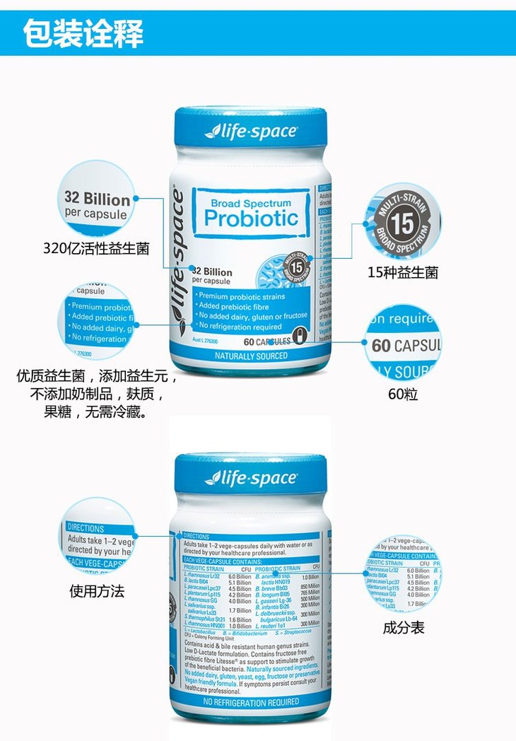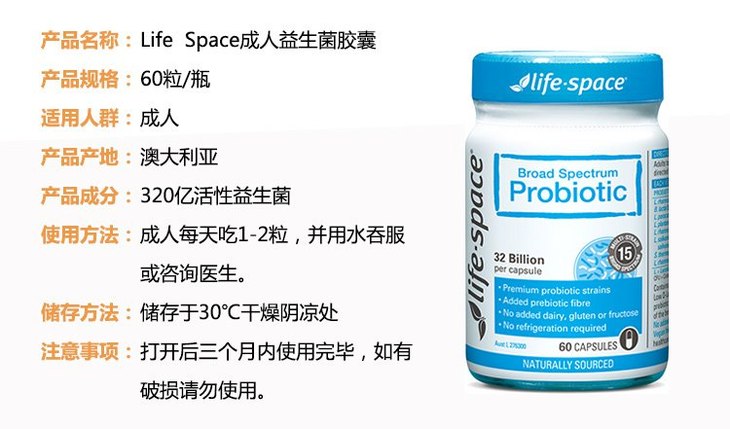 【保税】澳洲life space成人广谱益生菌胶囊 60粒
