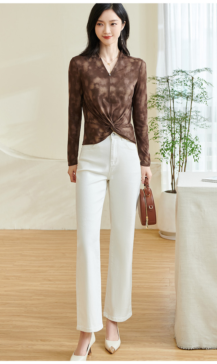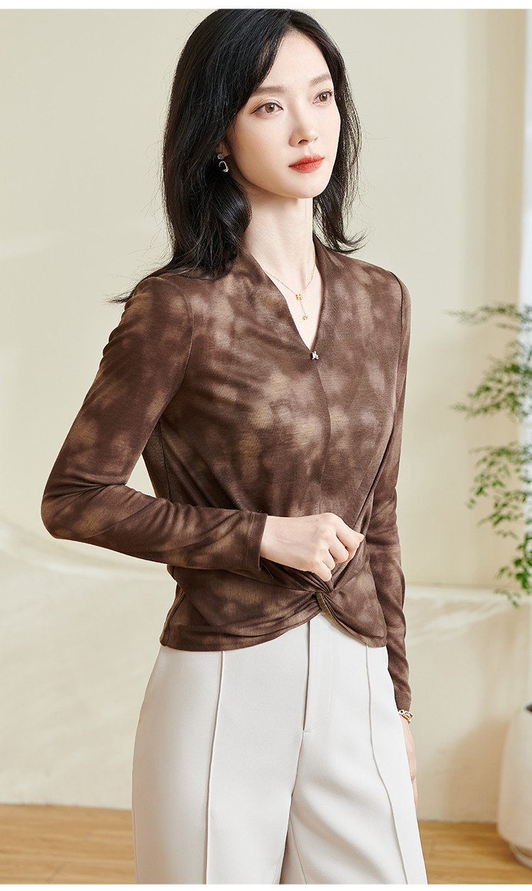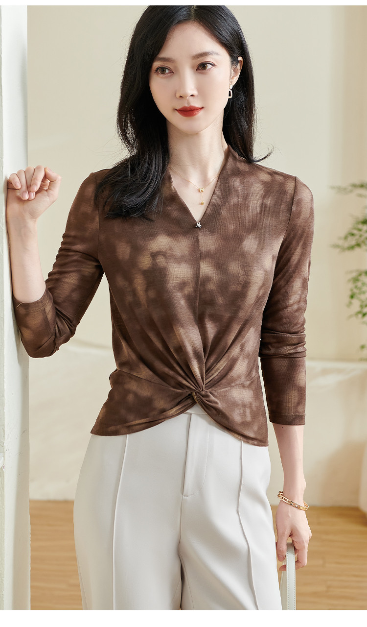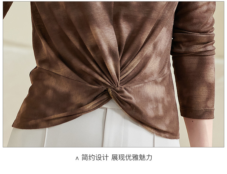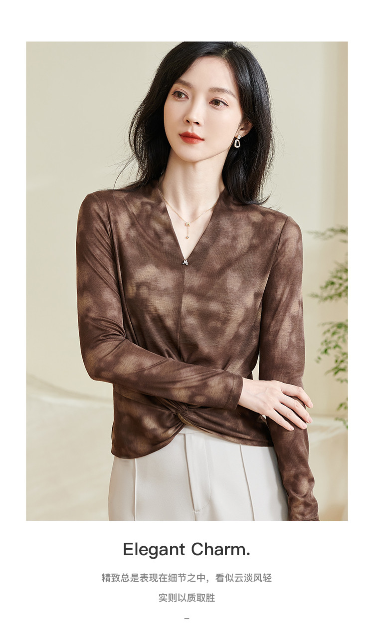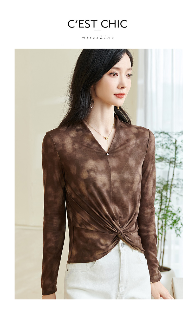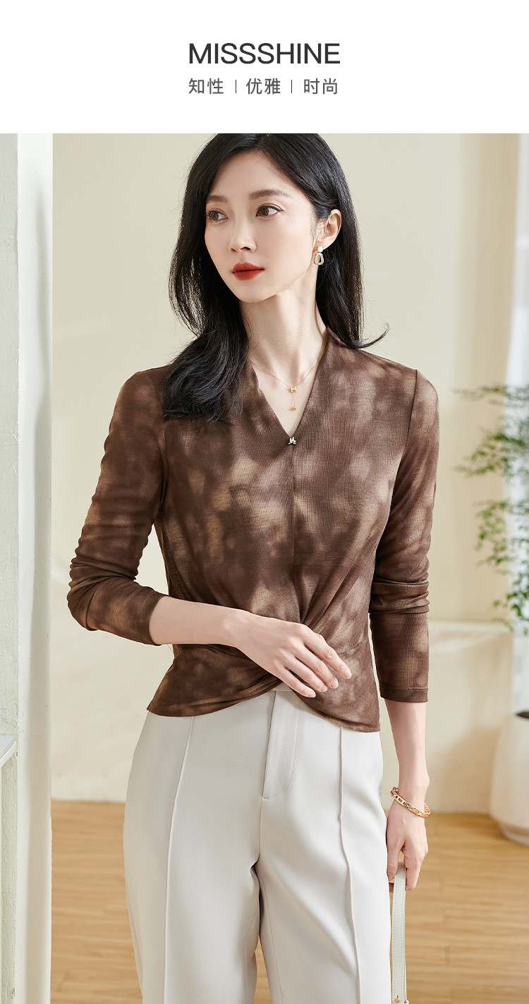【仅剩S】米思阳【不规则T恤】2025秋季新款时尚气质v领修身百搭小衫0253