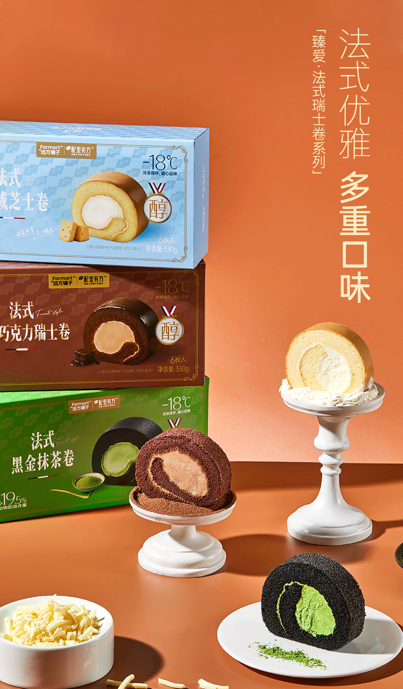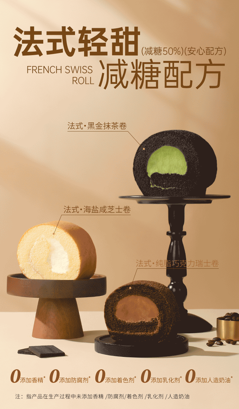 拍3减20元【法式纯脂巧克力瑞士卷】三款网红爆款口味,浓郁醇香巧克力,清洗茶香黑金抹茶,可盐可甜海盐芝士AA
