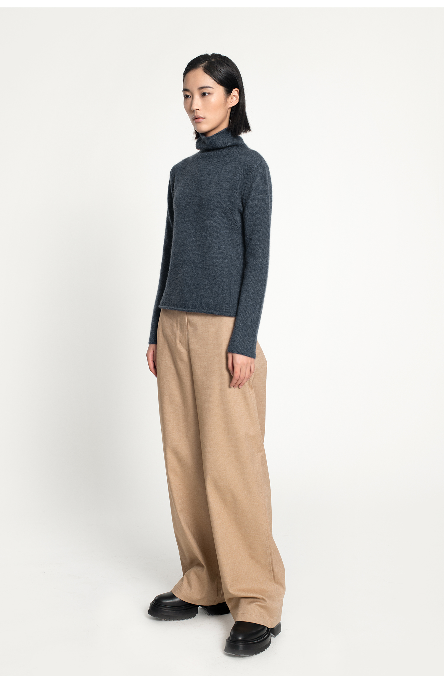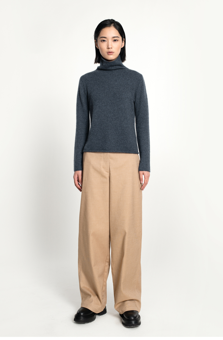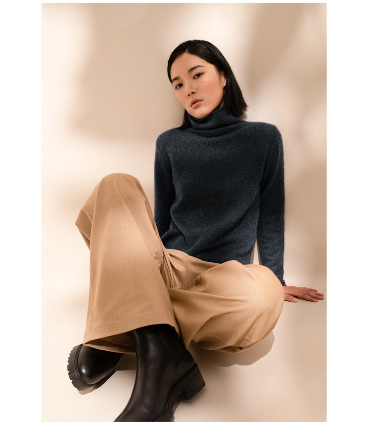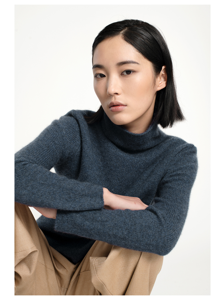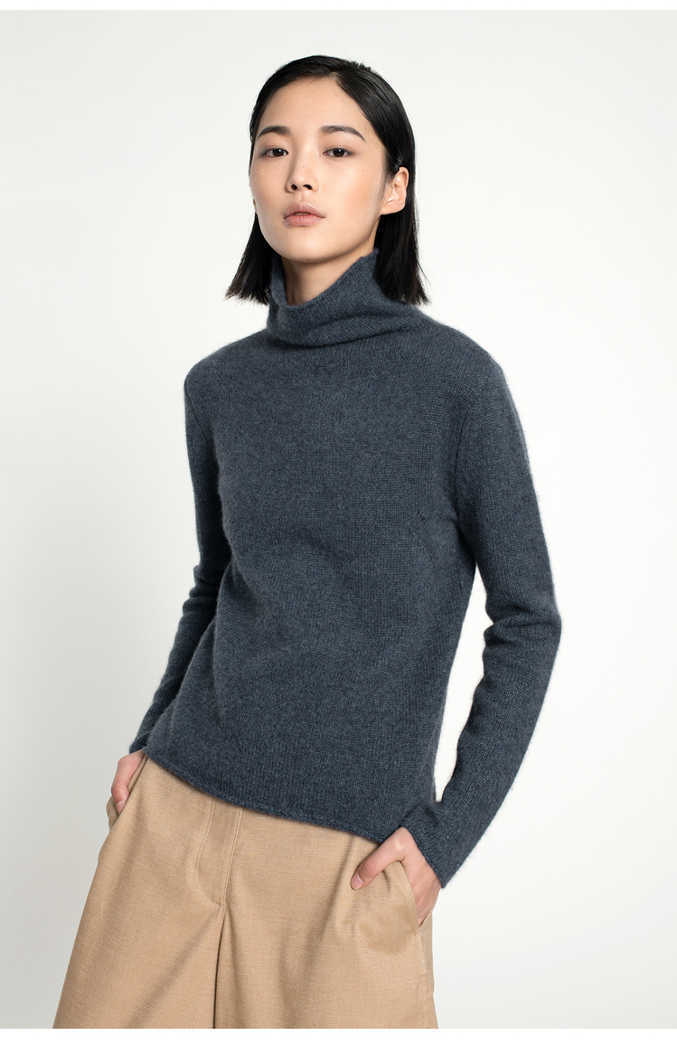 女士2021新款纯山羊绒三股加厚堆堆领套头衫