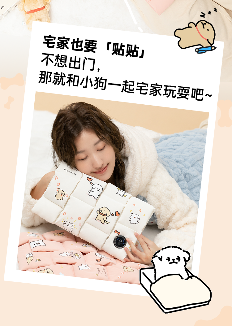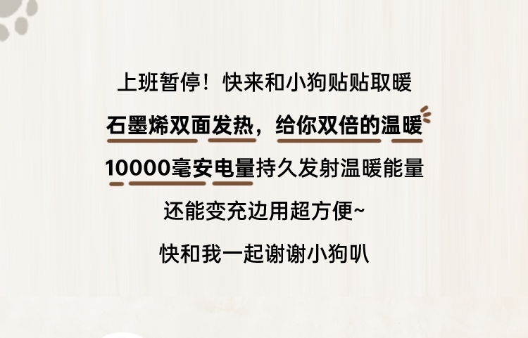 几素【线条小狗联名款】羽绒石墨烯热水袋充电暖手宝无水暖手袋